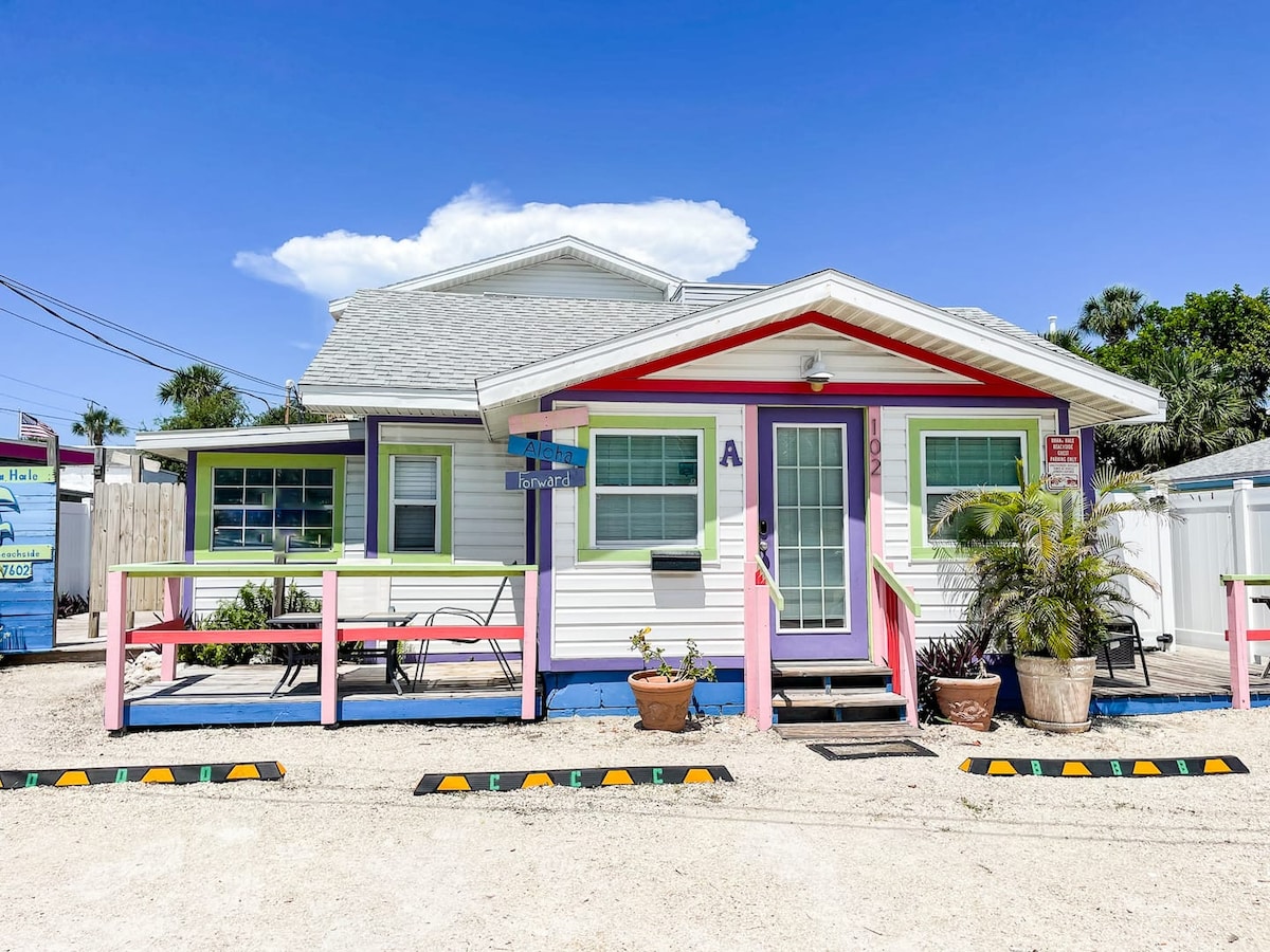 Cabaña de playa totalmente amueblada con vistas al agua ubicada en la hermosa isla Anna Maria, enfrente de la playa de arena blanca y el golfo de México. 1 dormitorio, 1 baño, capacidad para 4 personas con un sofá cama tamaño queen, lo que lo convierte en un lugar ideal para huéspedes solitarios, viajeros de negocios y familias. Se proporcionan sillas de playa, sombrillas, etc. A 3 manzanas de la histórica Bridge Street con animados restaurantes y bares. Carro gratuito de la isla y al otro lado del puente del pueblo pesquero de Cortez. Aparcamiento gratuito fuera de la calle.