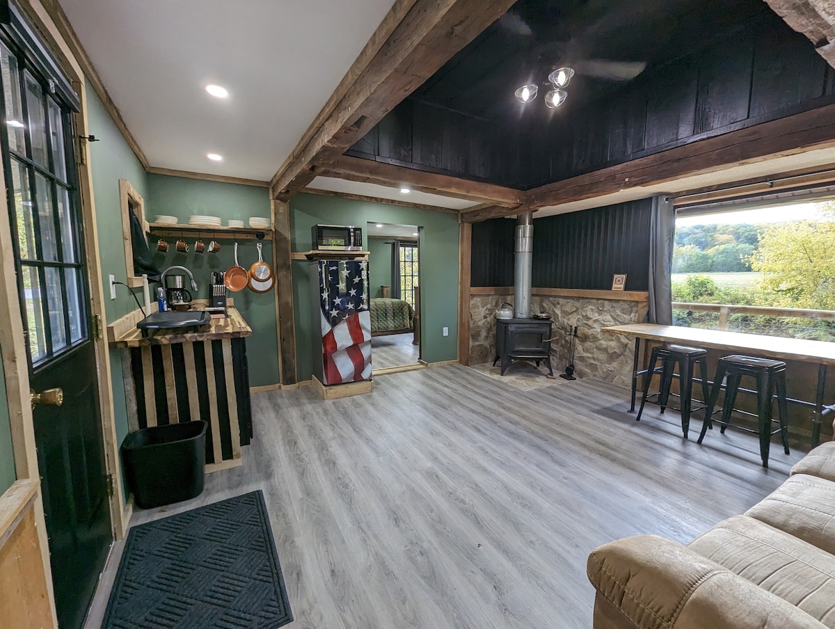 The Haven es justamente eso: un lugar de descanso. Disfruta de la sencillez de este alojamiento tranquilo y céntrico. La cabaña está enclavada en una zona boscosa con vistas al estanque y colinas ondulantes. En el corazón del hermoso país Amish estamos a pocos minutos de atracciones populares. La sala de estar incluye una cocina completa, lavadora y secadora, y muebles cómodos para disfrutar de un televisor inteligente y chimenea. Una cama tamaño king y baño completo en la planta principal. El loft tiene una cama tamaño queen. ¡Te animamos a que vengas a alojarte con nosotros!