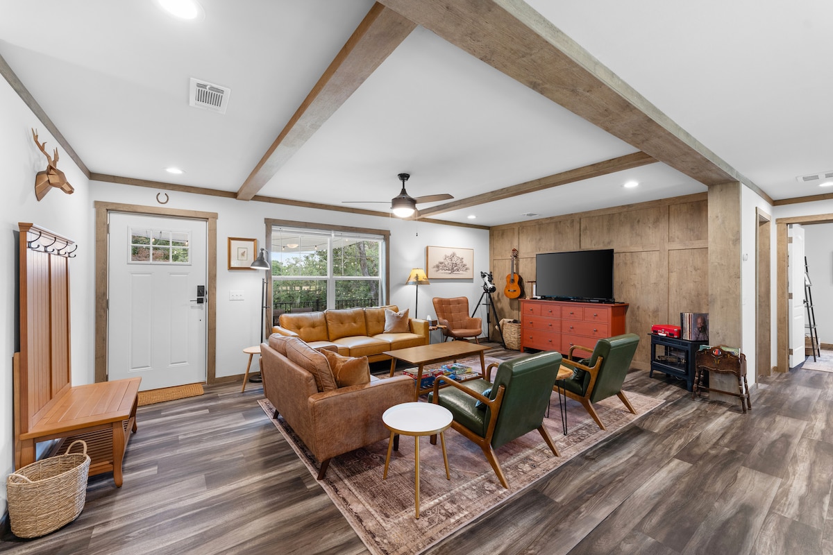 Disfruta de una estancia tranquila en nuestro acogedor bungalow totalmente amueblado mientras disfrutas del pintoresco paisaje desde tu propio jacuzzi privado y balcón. La escapada perfecta para los amantes de la naturaleza y aquellos que buscan una escapada tranquila. Con una ubicación céntrica cerca del lago Dunlap y a pocos minutos de los ríos Comal y Guadalupe, el centro de New Braunfels y el histórico distrito de Gruene. ¡Reserva ahora y experimenta la belleza y el encanto de New Braunfels como nunca antes!