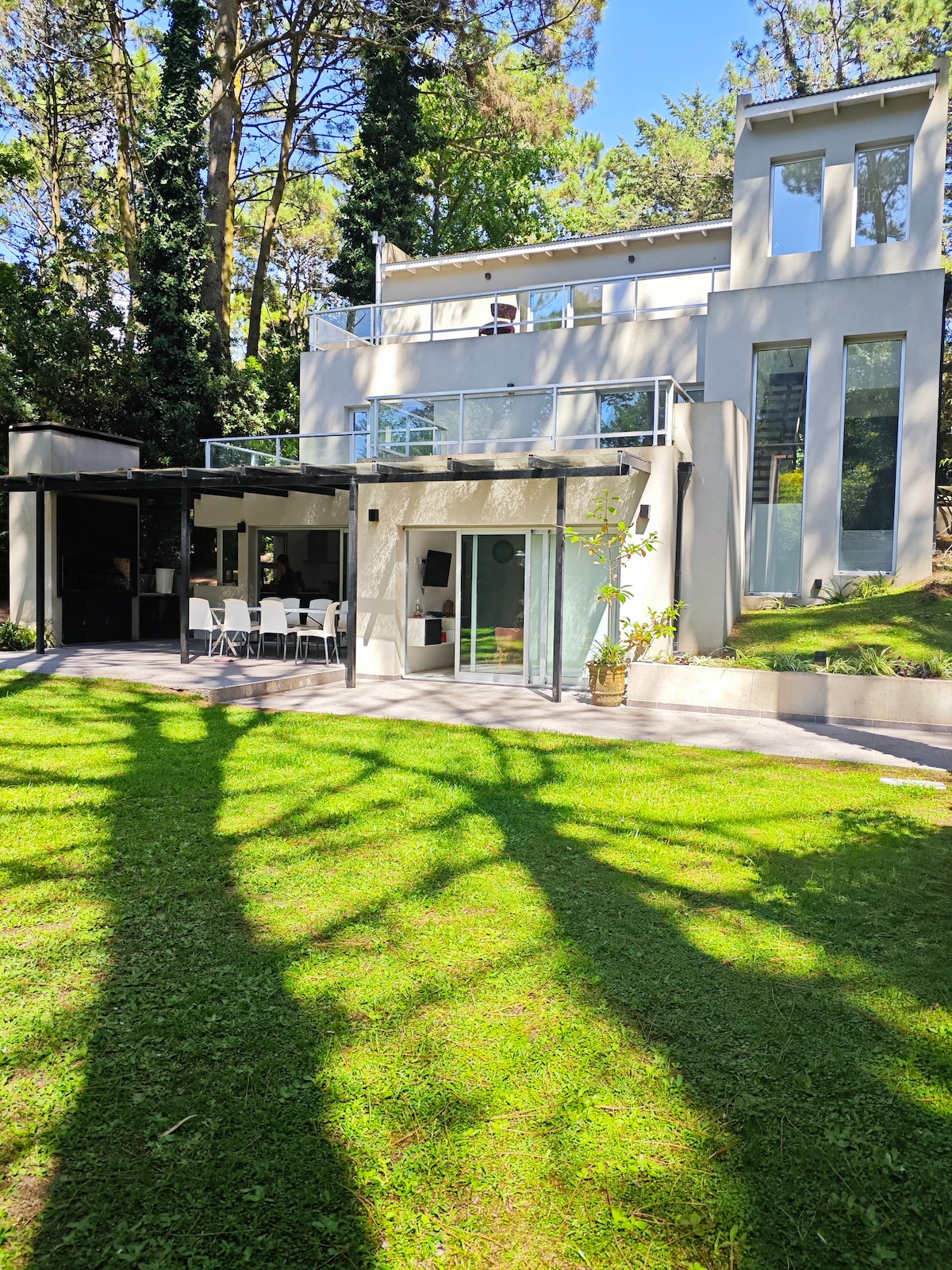 Hay lugares donde uno se queda y lugares que se quedan en uno. Aislate de la Ciudad, relajate, conectate con la naturaleza y vivi slow. En entorno de la reserva Faro Querandi y Dunas, rodeada de bosque y a 5 cuadras del Mar. Comodidades: 6 pers. 2 baños completos PB y PA. En la PB hab. marriage doble , PA 1 Hab. doble camas singles y 1 hab. Parents doble. Cocina comedor completas. Deck al bosque. Quincho con parrilla. Ducha externa. Cochera doble. Alarma monitoreada 24h. Mi cel en foto 34