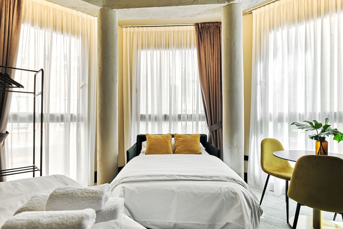 Se trata de un apartamento tipo estudio o apartamento tipo "monoambiente" como la habitación de un hotel 5*, donde la cocina, sala y dormitorio comparten un único espacio. El único espacio independiente del apartamento es el baño completo de uso exclusivo. Entrada autónoma. Alojamiento junto a la Catedral de Murcia y Mercado de Correos, concebido para ofrecer una experiencia exclusiva y agradable.
