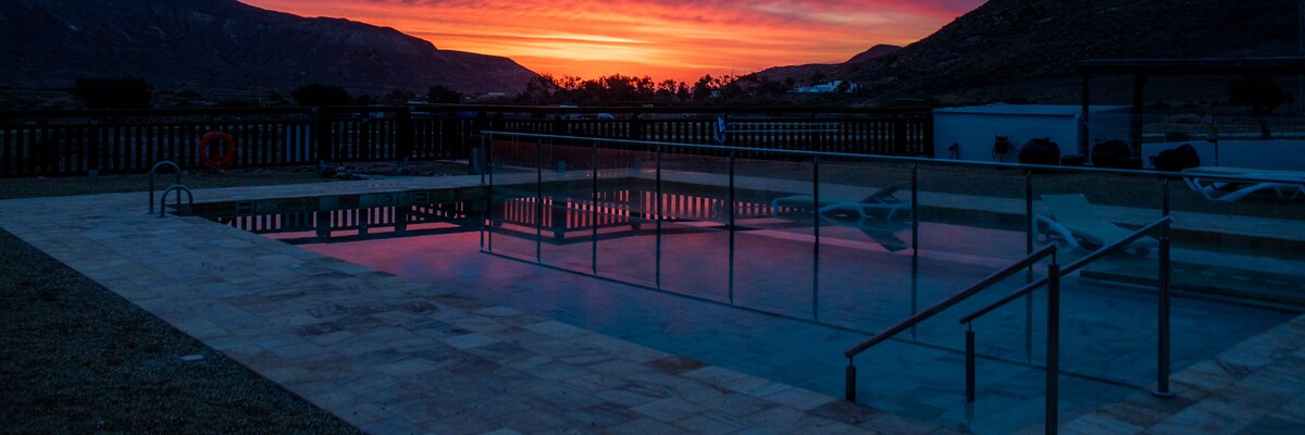 Situado a pocos minutos del centro de San José, en el camino hacia las playas de Genoveses y Mónsul en el Parque Natural Cabo de Gata, Níjar en Almería.