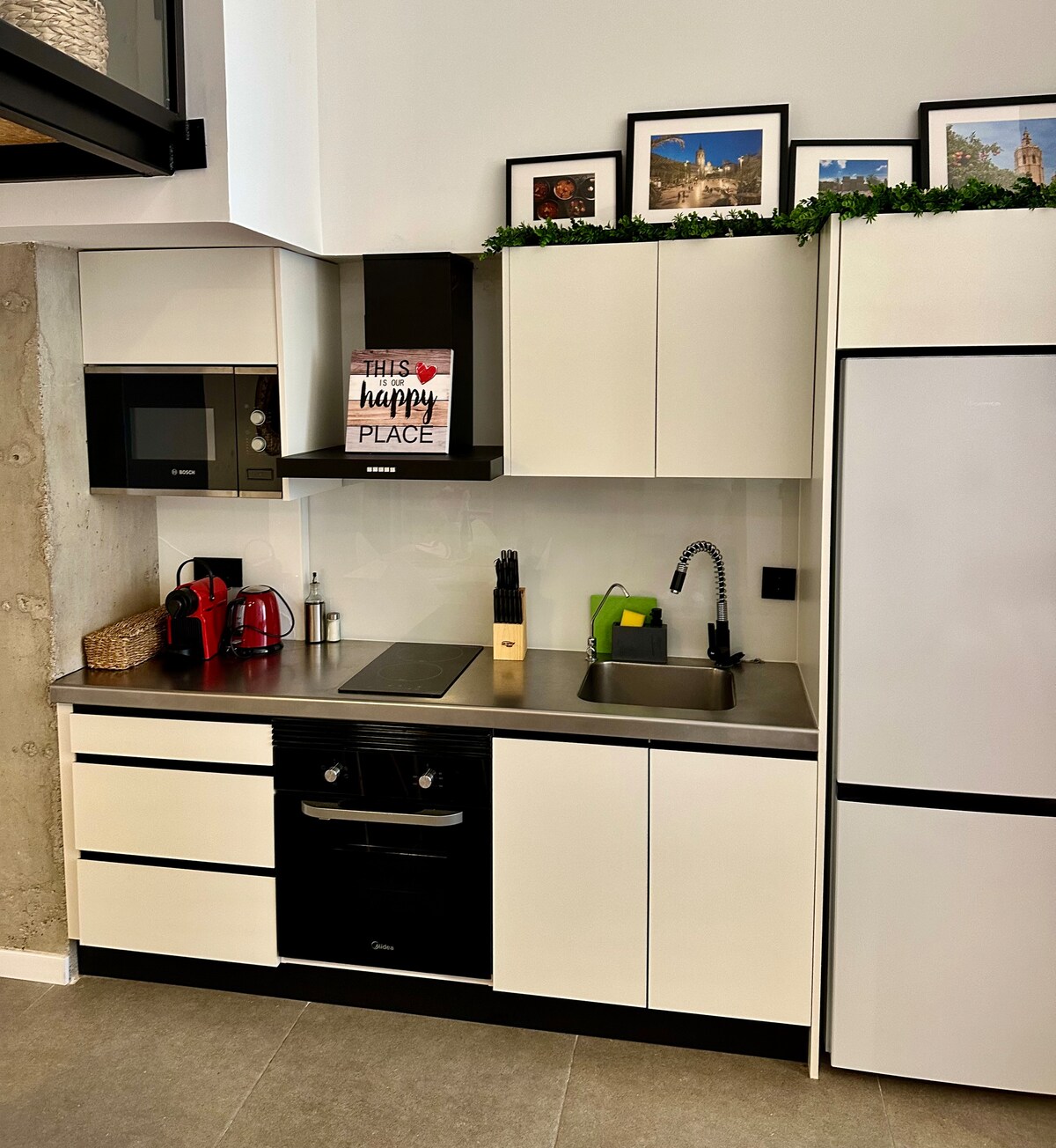 Propiedad recien reformada y lista para hospedarte. Loft entero con cocina, baño privado y terraza privada. En edificio con 7 apartamentos y un espacio comun en planta baja que tambien podras disfrutar si quieres. Se puede aparcar en la calle gratuitamente en toda la zona. Cortinas Black out Puedes elegir 2 camas individuales o 1 matrimonial. Restaurantes, farmacia y mercados a pocos metros A solo 1min de metro Cantereria y Tranvia que te llevaran a los sitios turisticos en breves minutos