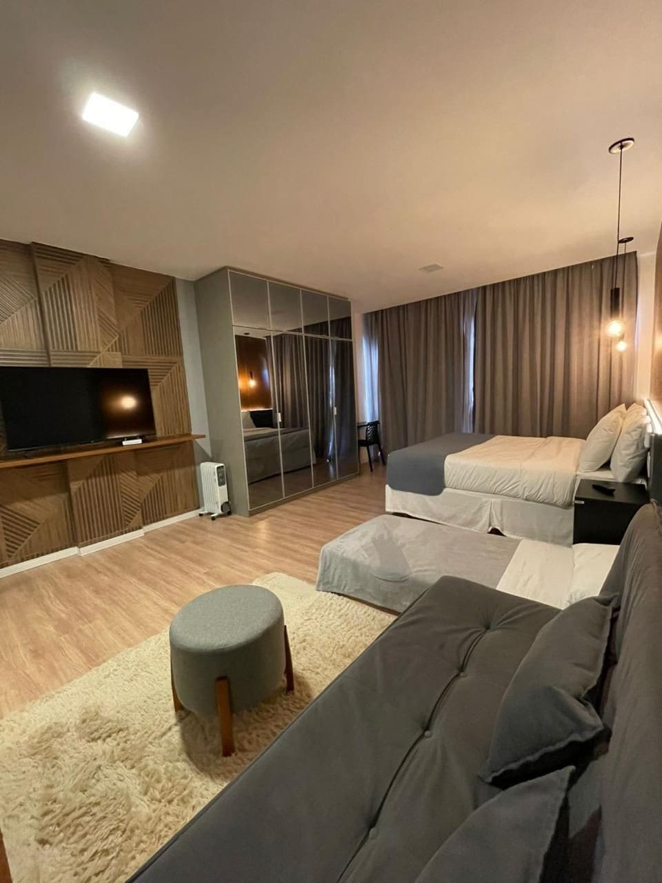 Apartamento Deluxe para até 5 hospedes (1 cama casal + sofá cama + bicama). Luxuoso e Novíssimo Gran Paradiso Resort Campos do Jordão - SP ⭐⭐⭐⭐⭐! Quarto com 28m2, varanda p/ frente, ar, tv, cofre, wi-fi, mini cozinha na charmosa Suíça Brasileira ☃️. Piscinas cobertas e aquecidas, academia, boliche, espaço kids, Spa, Sala Game, bar e adega. Para famílias ou casais que buscam descanso com sofisticação. Restaurante e Wine Bar! Venha relaxar cercado pela natureza e conforto impecável.