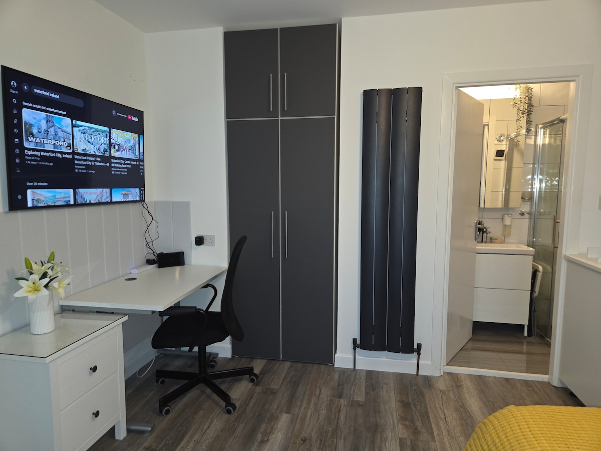 Nuestro apartamento privado es parte de nuestra propiedad familiar en una zona tranquila de la hermosa Tramore y está a minutos de la playa y el centro de la ciudad. Doneraile Walk, acantilados y vistas al mar junto a la propiedad. Zona de terraza privada. Aire acondicionado para calefacción/refrigeración. Adecuada para 2 adultos que comparten una cama doble y un coste adicional de 20 € por un huésped adicional en una cama individual.