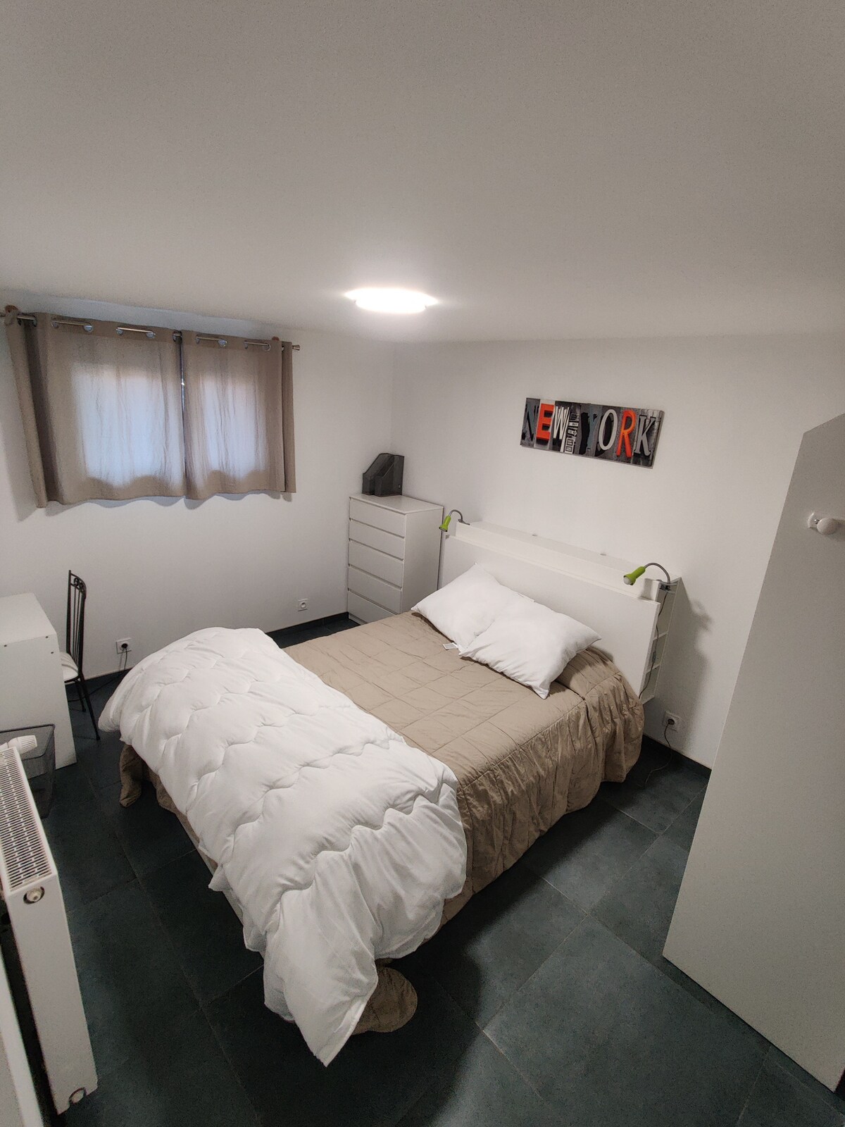 Habitación privada, con aire acondicionado, en la parte superior de un loft abierto en el centro de la ciudad de Montélimar a 5-6 minutos a pie de la estación de tren SNCF. La habitación cuenta con 1 cama Luis XV de 140, una cama barco de 120 y una cama Luis XVI de 90. Baño 100 % privado con gran ducha a ras de suelo, lavabo e inodoro. Tenga en cuenta que se trata de un LOFT ABIERTO. El propietario es un autor de 39 años, que reside en la planta baja y duerme en la planta baja.