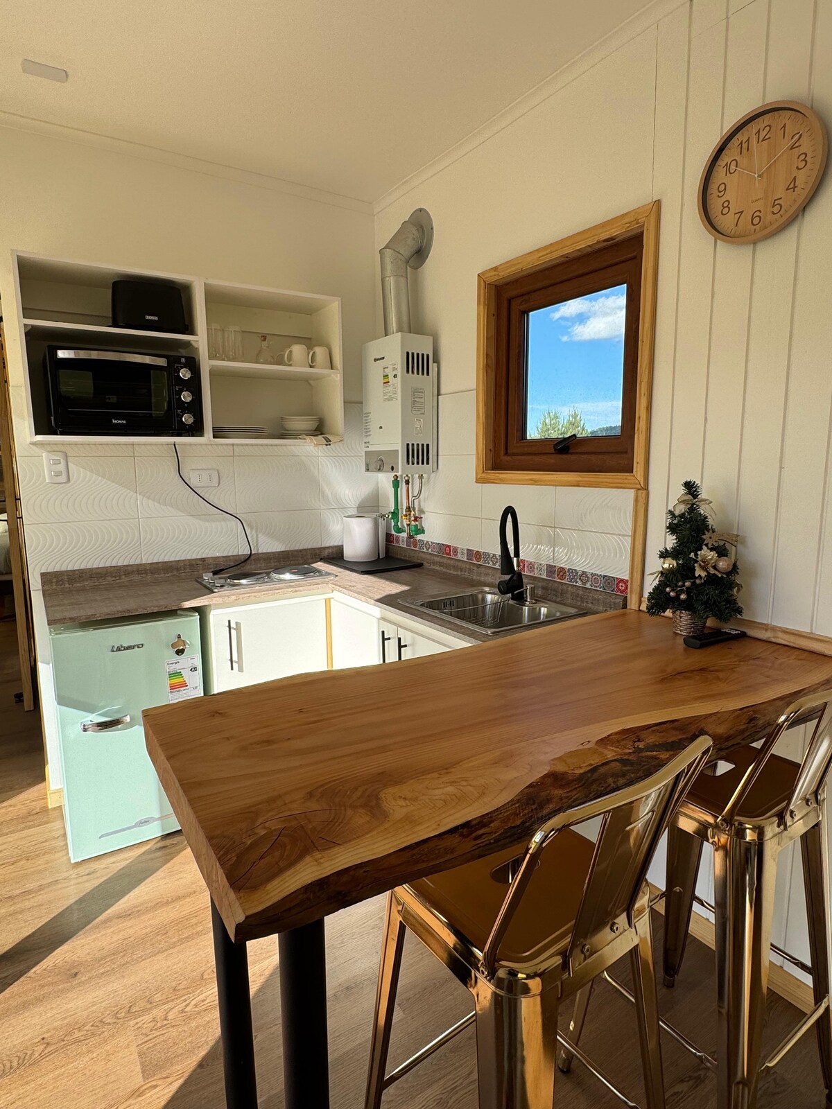 A solo 10 kms de Coyhaique conecta con la naturaleza en esta escapada inolvidable. Nuestra tiny house se encuentra en nuestro campo, un lugar privado y silencioso, donde podrás tener acceso al río, a senderos, a la patagonia en vivo !! Somos pequeños productores de lana de ovejas, lo cual hace que vivas la experiencia de alojarte en un rancho de la Patagonia, una experiencia única. Además servicios con costos extras de tinaja caliente desde agosto a mayo y viajes de pesca con mosca en temporada