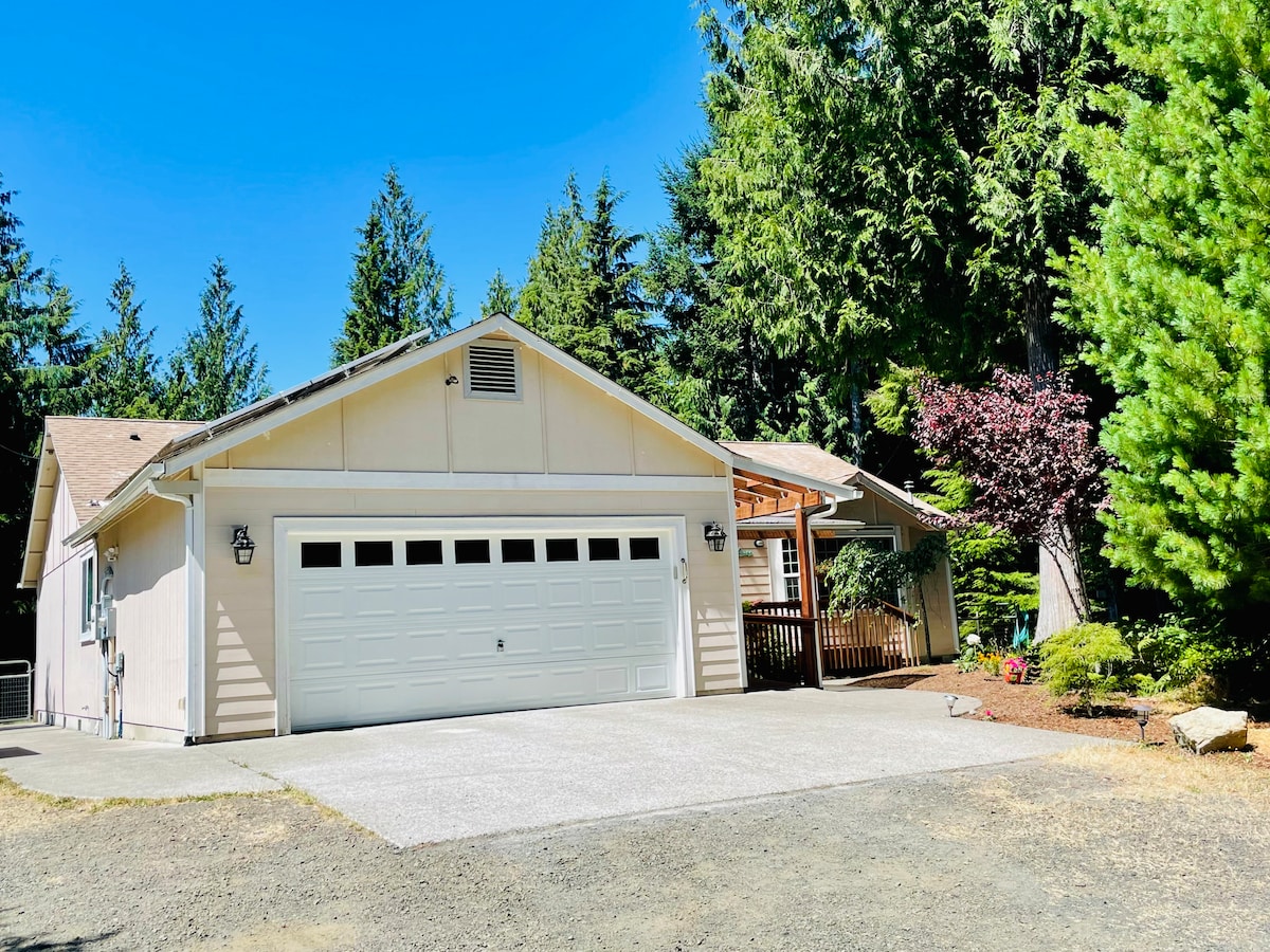 Ubicado sobre el lago Whitman, escápate con una bebida fría en tu gran terraza que te hace sentir «dentro de los árboles». Rodeado de cedros centenarios, observa cómo las águilas calvas residentes se turnan para sumergirse en el lago y comer su refrigerio. Baja las escaleras de la vía del ferrocarril y atraviesa nuestro patio ajardinado «naturalmente» para encontrar tu muelle privado con un kayak gratuito para los huéspedes. Whitman Lake está a solo 45 minutos al sur de Tacoma y a 45 minutos al norte de MRNP... una base de operaciones perfecta para tus aventuras.
