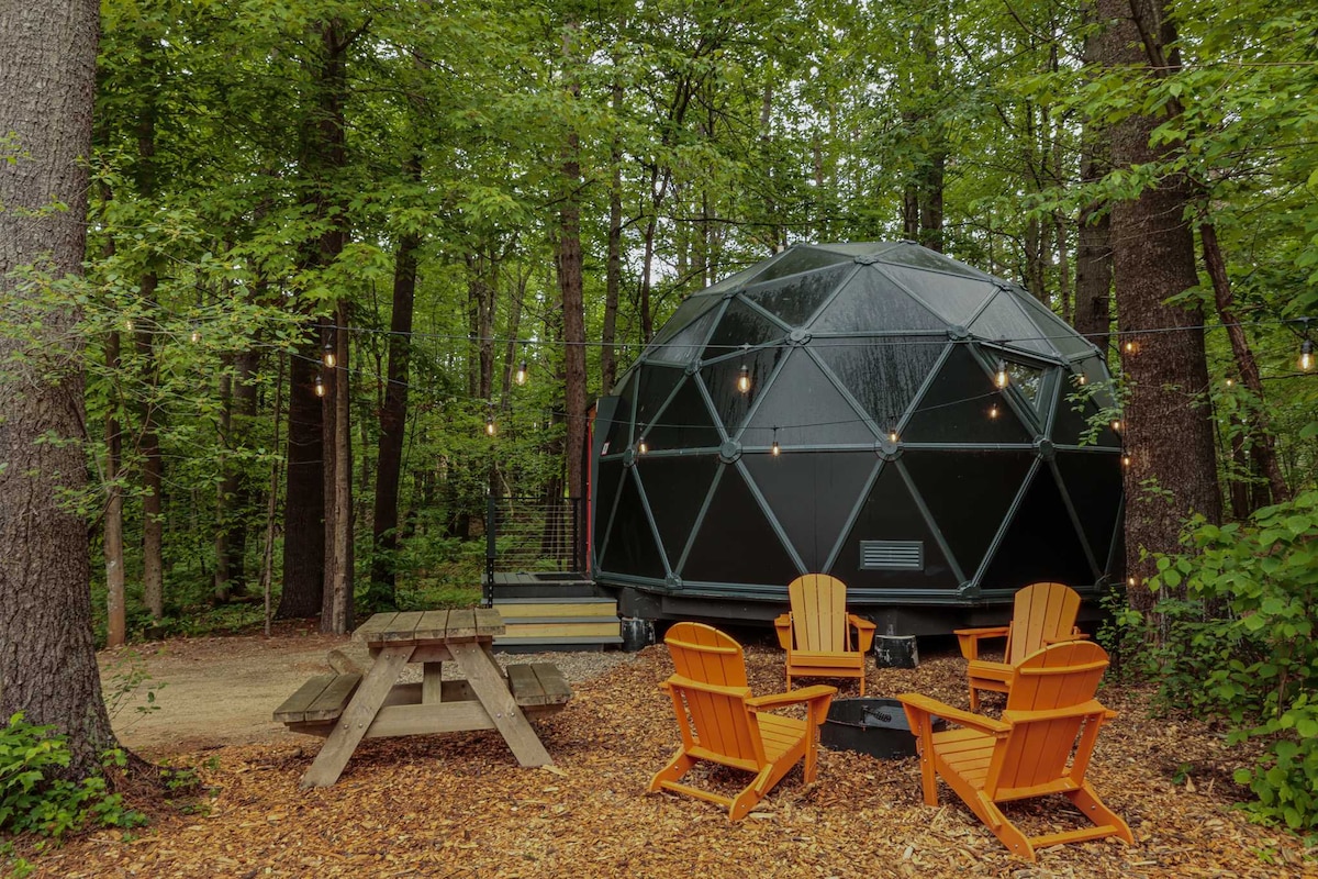 The Streamside Getaway ofrece una lujosa experiencia de glamping en un nuevo Geodome con energía solar y eólico. Equipado con muebles personalizados, nueva bañera de hidromasaje, electrodomésticos de lujo, wifi gratuito de alta velocidad, unidad de aire acondicionado/calefacción e instalaciones modernas de baño e cocina, los huéspedes pueden disfrutar de una estancia hogareña y cómoda en la naturaleza. Un sitio de glamping construido en 2022 ofrece un proceso de llegada sin contacto con un código de llave personalizado. Además, hemos agregado tiro con arco, lanzamiento de hachas y kayaks para mejorar tu actividad al aire libre.