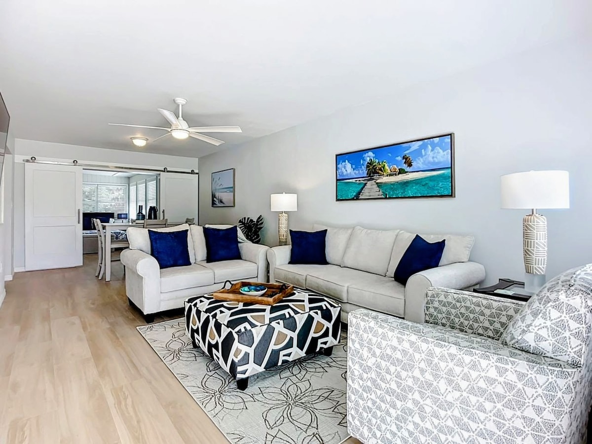 Escape to this luxurious 1st-floor condo on Siesta Key, just 5 minutes from the award-winning Siesta Key Beach. Enjoy private access to its soft, white sand and turquoise waters. Perfect for families, the condo offers two heated pools, lighted tennis and pickleball courts, a fishing pier, gym, and sauna for endless fun and relaxation. Nestled in a tropical setting, it’s the ideal spot for your beach vacation, staycation, or a peaceful getaway. Everything you need for an unforgettable experience!