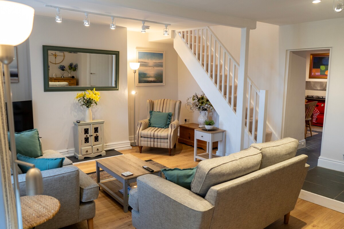 Un magnífico y espacioso departamento independiente dúplex que forma parte de una capilla convertida en el centro de Criccieth Una puerta privada y una escalera te llevan a una gran sala de estar espaciosa con una barra de esquina. El comedor de planta abierta, la larga mesa de pino, la cocina a medida ofrece una isla de desayuno, una encimera de granito y electrodomésticos Smeg. Una escalera de caracol conduce a dos dormitorios. Tres dormitorios más están ubicados junto a la sala de estar, la playa y el castillo de Criccieth están a dos minutos a pie.