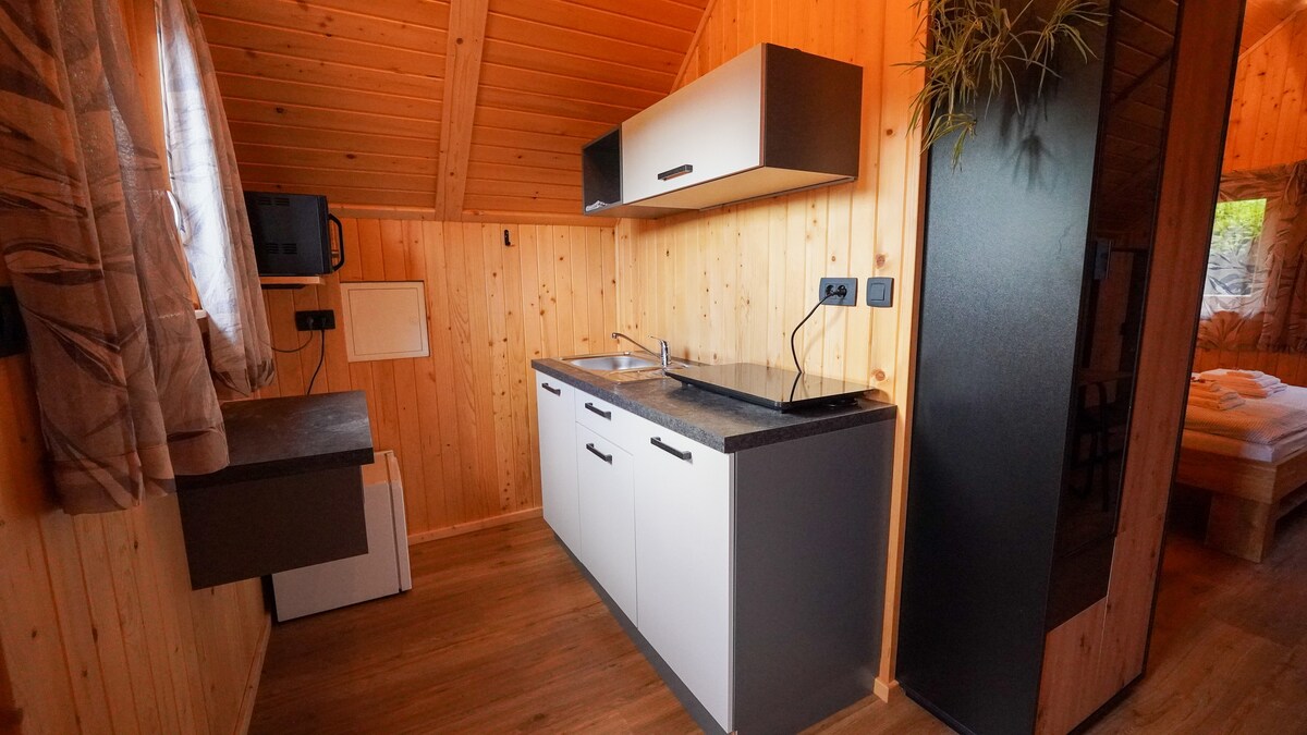 Glamping Avantura offers a unique stay in a cozy wooden cabin with a fully equipped kitchen, private bathroom, and stunning nature views. Enjoy the outdoor terrace, fire pit, and the peace of the surrounding forest. Perfect for hiking, cycling, or simply relaxing in unspoiled nature—with all the comforts of home.