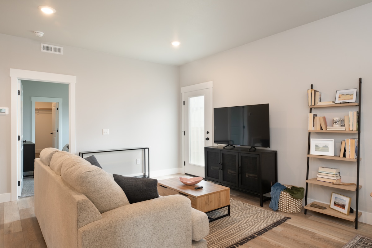 Con una ubicación céntrica y de nueva construcción, esta elegante casa de dos dormitorios es perfecta para parejas, familias o amigos. Cada dormitorio tiene una cama tamaño queen y su propio control de temperatura para una estancia personalizada. Disfruta de una noche acogedora con una comida casera y una película, o sal a asar malvaviscos junto a la chimenea de gas. Las sábanas de lujo, los suelos calefactados del baño y las toallas de felpa añaden un toque de indulgencia, mientras que dos bicicletas de crucero están disponibles para explorar la ciudad a tu propio ritmo.