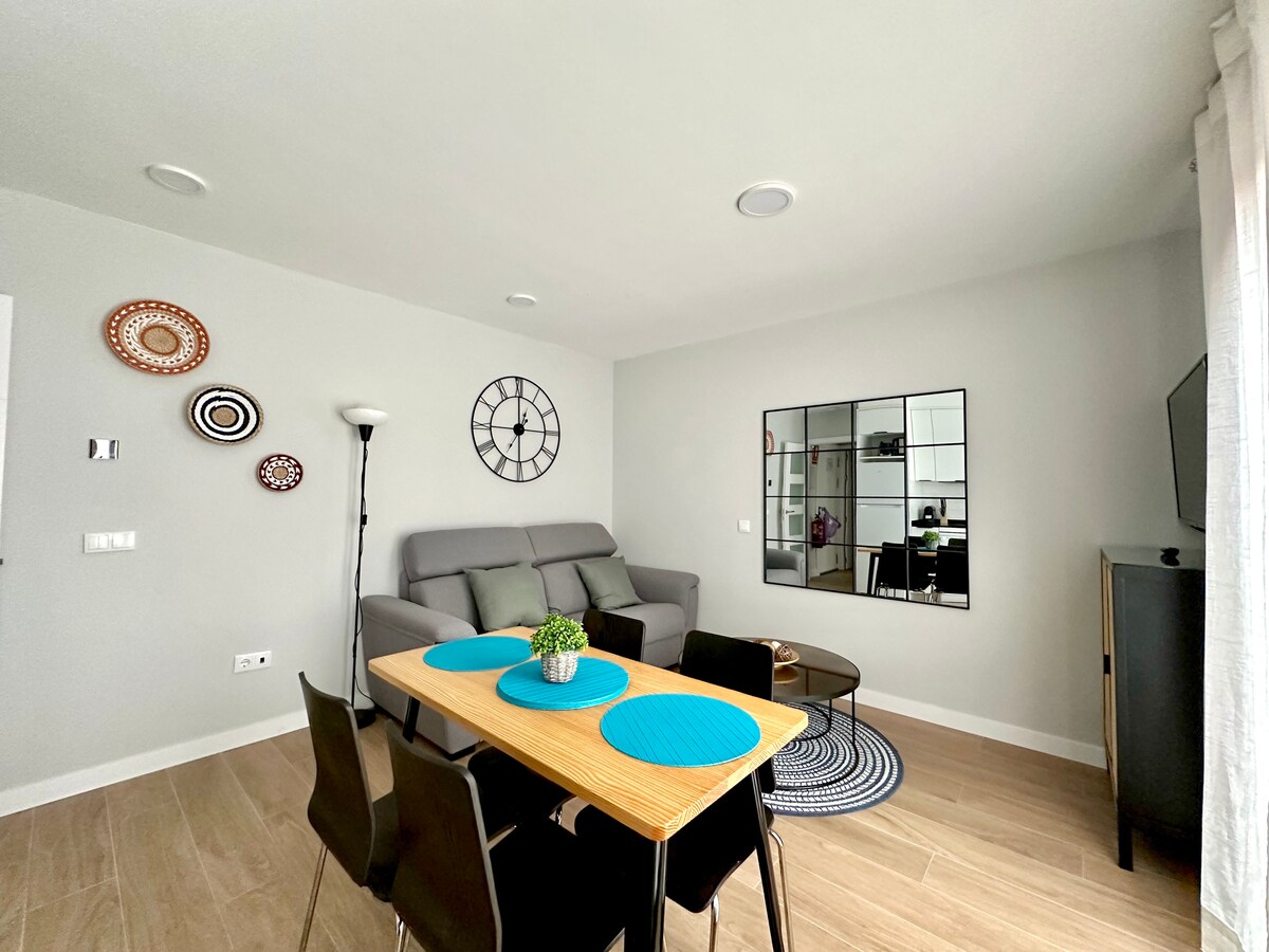 Apartamento a pie de calle.ideal para viajes de trabajo, de estudios,asuntos médicos etc. con vitrocerámica, nevera, lavadora/secadora,lavaplatos, bomba de aire calor/frió, microondas, nespresso, utensilios de cocina completo,hervidor de agua para infusiones,cama matrimonio, sofá cama 190x150, smart tv, wifi, alarma, línea directa metro a Sol ( 15”),amplio baño, ducha efecto lluvia,dispensadores automáticos de gel.zona ajardinada,muy fácil aparcamiento, con dos parques infantiles de columpios