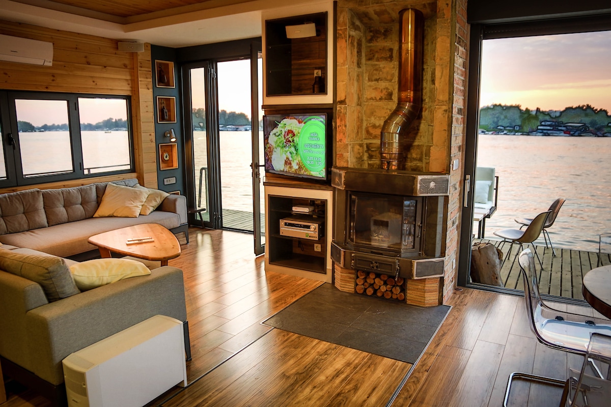 Lujosa casa flotante en el río Sava con piscina privada diseñada para proporcionar una experiencia maravillosa y única. A solo 10 minutos a pie de la famosa playa de la ciudad Ada Ciganlija. Desde el centro de la ciudad a 15 minutos en coche y a unos 4 km del centro comercial Ada Mall que abrió recientemente. La distancia desde el aeropuerto es de 25 minutos en coche. Cerca puedes encontrar mercados. Alrededor de la casa flotante hay 3 restaurantes donde se puede comer pescado fresco y muchas especialidades.