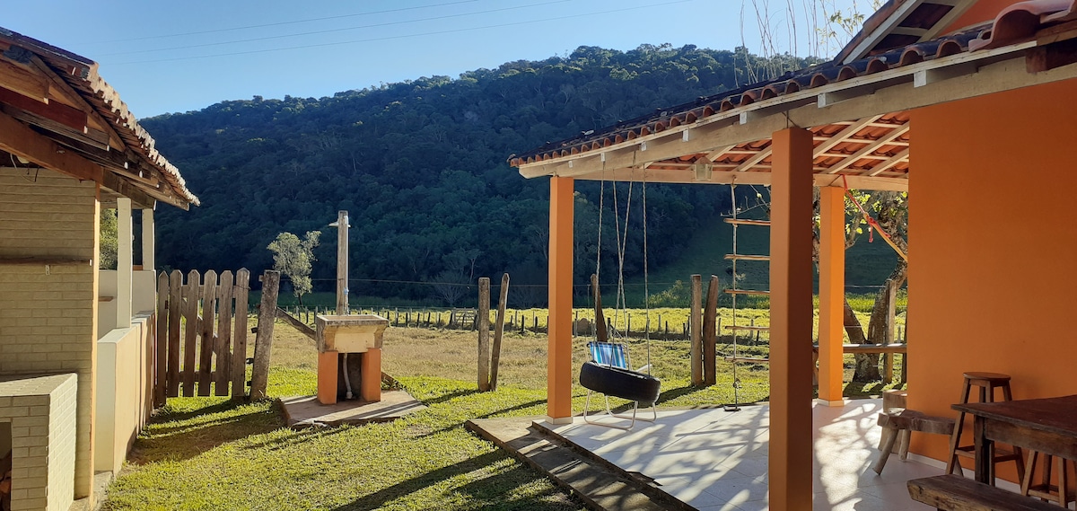 A 3 km de Cunha, en un área de regeneración natural de Mata Atlântica, se encuentra el sitio. Diseñé una casa en un entorno rural típico para compartir con los visitantes. Tiene un dormitorio con cama doble, una sala de estar con sofá cama, un baño común y una cocina bien equipada, con estufa de leña para las comidas típicas de la granja. El sitio se encuentra a 40 km de Paraty, una ciudad colonial catalogada como patrimonio histórico. En la zona es posible visitar cascadas y hacer senderos en una zona de preservación ambiental.