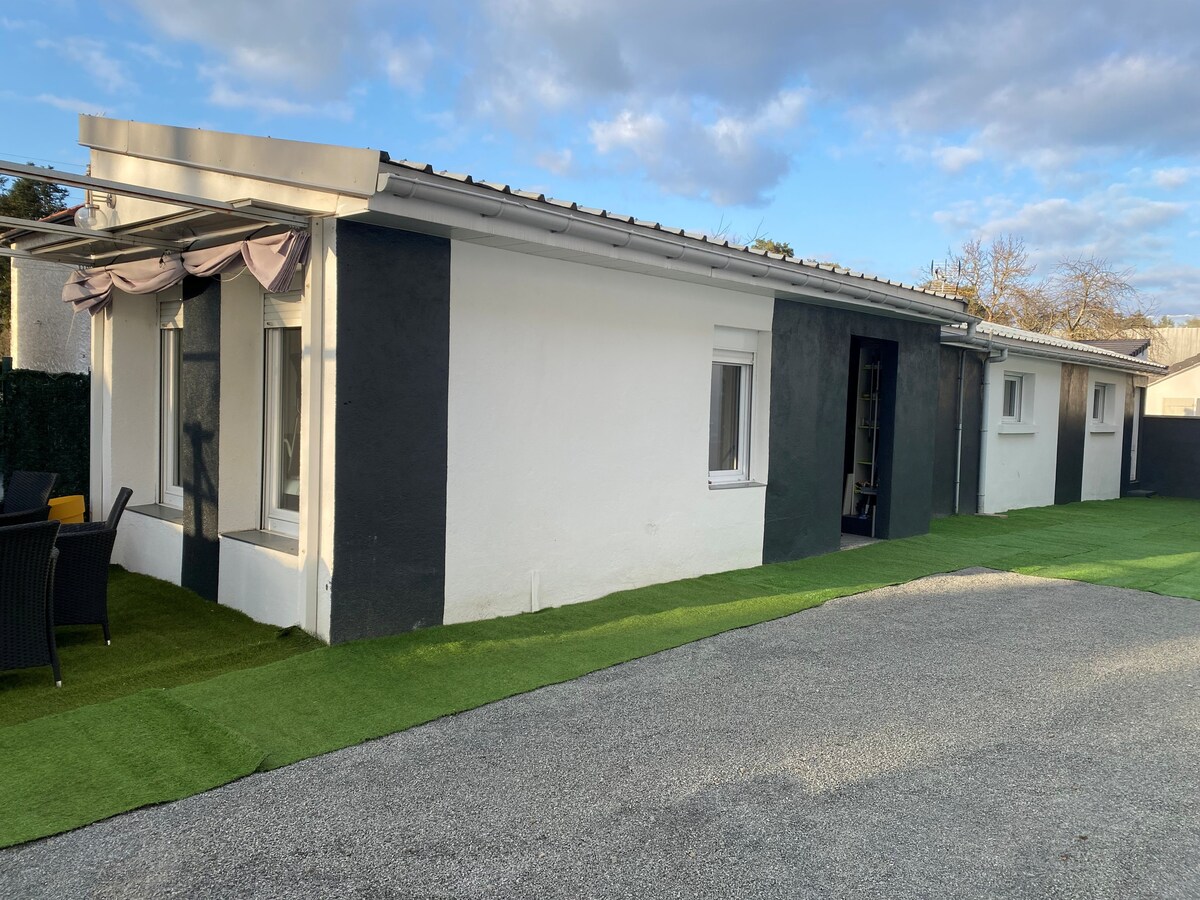 Casa independiente reformada en 2024 que incluye un agradable patio de 300 m2 donde puede estacionar su vehículo y disfrutar de una zona de terraza. La casa está situada en una zona residencial tranquila y cerca de las tiendas a poca distancia. Cerca del puente de Vichy 50 m, de las orillas del Allier, así como de los tratamientos termales y del centro de la ciudad de Vichy. A 2 minutos del CREPS y del centro polideportivo. El alojamiento incluye 1 dormitorio con cama doble, 1 sofá cama en la sala de estar, cama plegable.