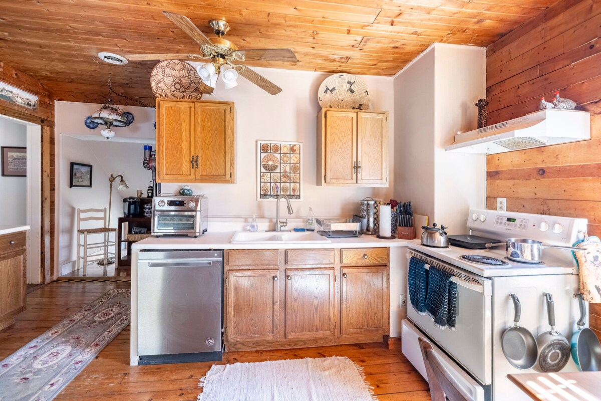 ¡Nuestro chalet de inspiración retro ofrece un entorno forestal aislado con excelente acceso a servicios convenientes! Nuestro espacio familiar tiene capacidad para 6 personas. Cada habitación ha sido cuidadosamente diseñada para tu comodidad y estética auténtica. Toda la casa es tuya para usar. La cocina totalmente equipada y la lavandería son una gran ventaja. Tanto en días soleados como lluviosos, disfruta de una taza de café recién hecho en el amplio porche delantero. Un garaje adjunto para 3 coches y una entrada para vehículos permiten un amplio estacionamiento.