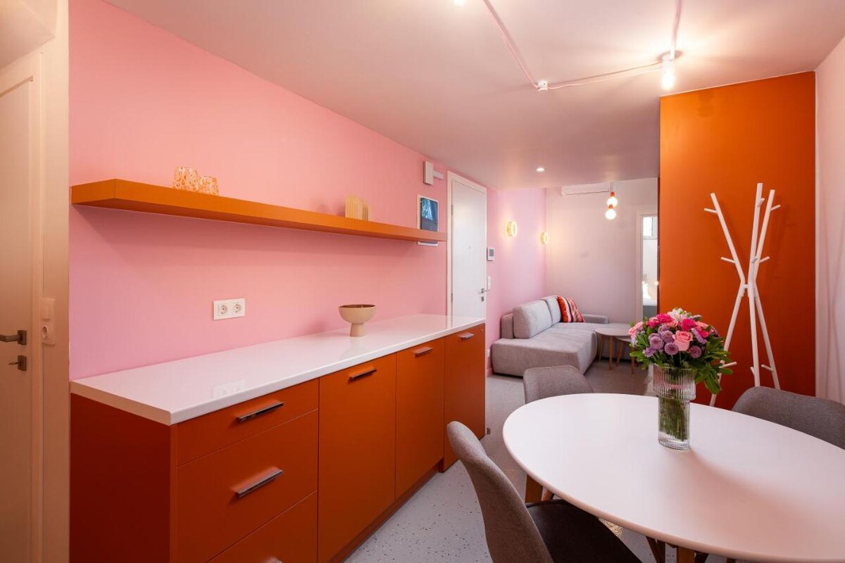 Un apartamento elegante en Atenas, propiedad y diseñado por Neta Dror, una diseñadora y artista que ha infundido el espacio con su visión personal. Este apartamento tiene un espacio único que combina elementos antiguos y nuevos. El apartamento tiene una gran sala de estar con un cómodo sofá, una mesa de comedor y una cocina con todas las comodidades. El dormitorio tiene una cómoda cama doble y un baño oculto que sorprende y deleita. Este apartamento es mucho más que un lugar para dormir, es un lugar para experimentar.
