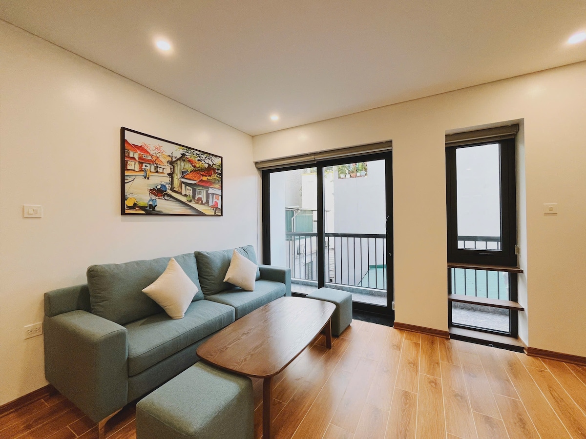 Modern 1BR fully furnished apartment in Phu Thuong, Tay Ho – just 5 mins to Lotte Mall and Red River. Triple-layer security, 24/7 central hot water, European-standard soundproof windows, fire safety & lightning protection. Balcony, elevator, private washer, premium amenities. Close to Phu Gia temple, Ba Gia pagoda, village pond, local market & famous Phu Thuong sticky rice festival. Quiet, convenient, and full of Hanoi charm.