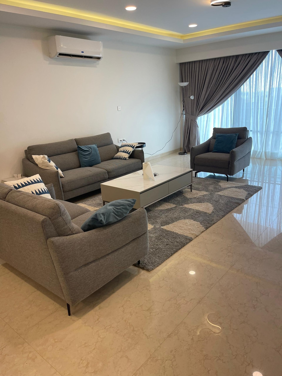Apartamento tranquilo y suntuoso situado en una villa dentro de una ciudad residencial con una zona verde privada y un sistema de vigilancia colectiva para garantizar un entorno de vida a todos los residentes. Es perfecto y elegante para grupos. El acceso al apartamento es fácil desde la VDN. Está cerca de todos los servicios en la parte residencial, gestionada por un Sindicato de condominios y no muy lejos de restaurantes y supermercados en la parte comercial.