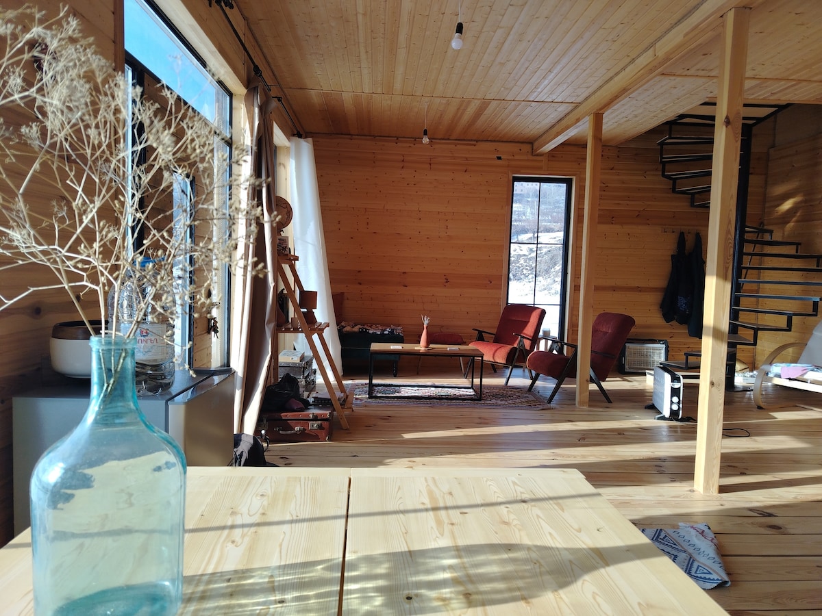 Уютный деревянный коттедж, рассчитанный на размещение от 2 до 4 гостей. Коттедж полностью оборудован всеми необходимыми коммунальными удобствами для комфортного отдыха. Из гостиной и спальни открывается красивый панорамный вид на природу, который особенно радует утром и на закате. Дом тёплый, светлый и идеально подходит для спокойного отдыха, романтического уикенда или поездки с семьёй. Здесь вы сможете насладиться тишиной, свежим воздухом и настоящей атмосферой уюта вдали от городской суеты.