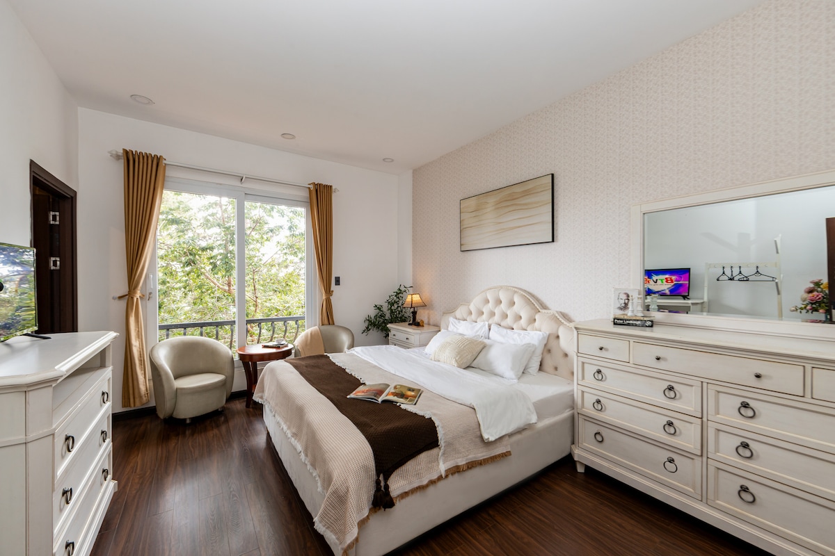 🌲 ¡Te damos la bienvenida a Penthouse Retreat, Stardome Dalat! Ubicado en la planta más alta de la propiedad, el apartamento ofrece una privacidad absoluta, instalaciones completas y una vista poética al bosque de pinos. ✨ • Relajante bañera de vidrio mirando el bosque desde el baño • Cocina bastante privada, acogedora mesa de comedor de madera • Televisión grande, cuenta de Netflix, wifi fuerte Estacionamiento gratuito • Tamaño: 70 m² (apto para 2–4 personas) 👉 Nota: Dado que el ático está en el ático, tomará el ascensor hasta el cuarto piso y tendrá que subir las escaleras 1 piso.
