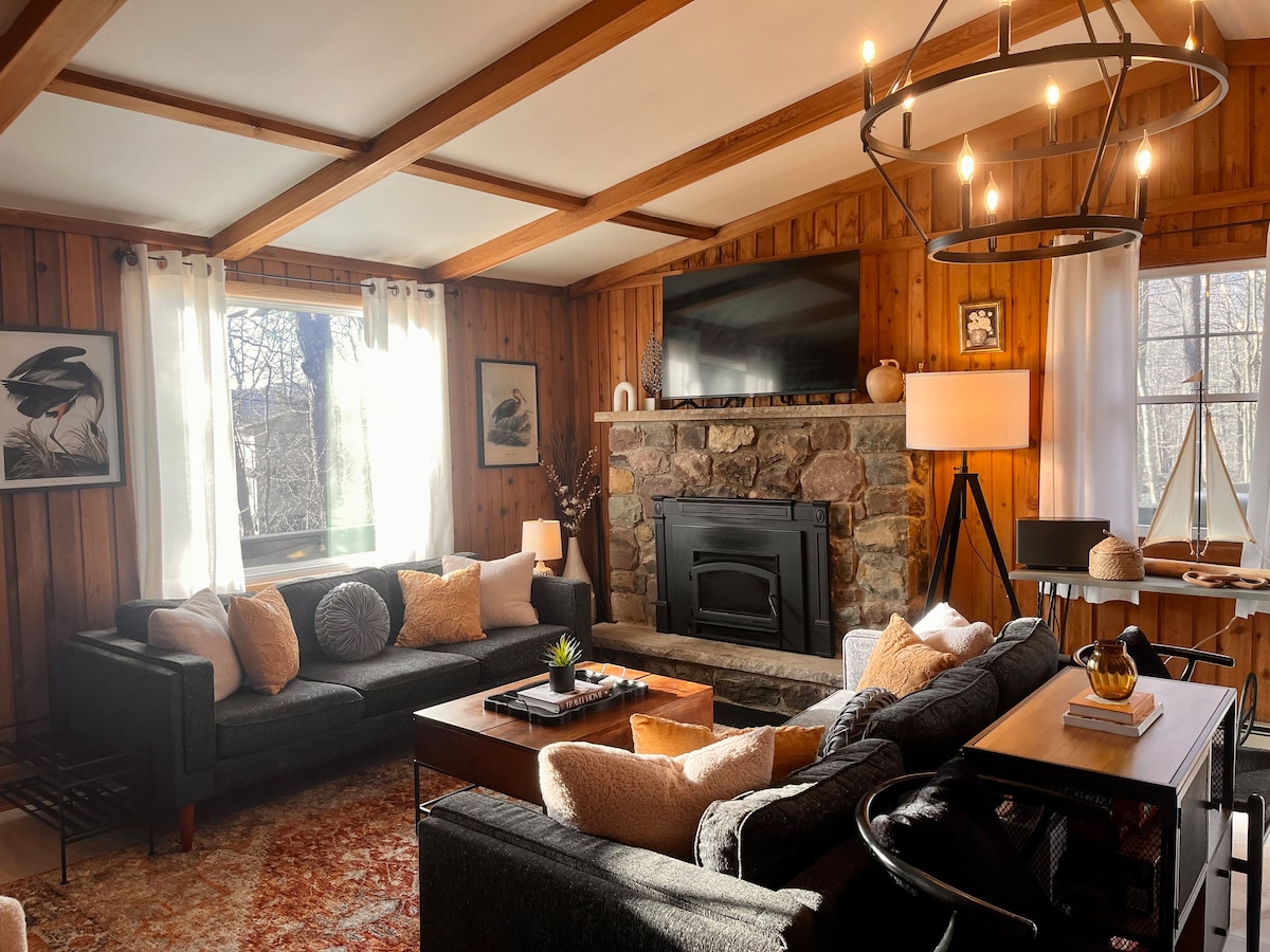 Cabaña de vacaciones en Poconos • Chimenea • Sala de juegos • Fogata