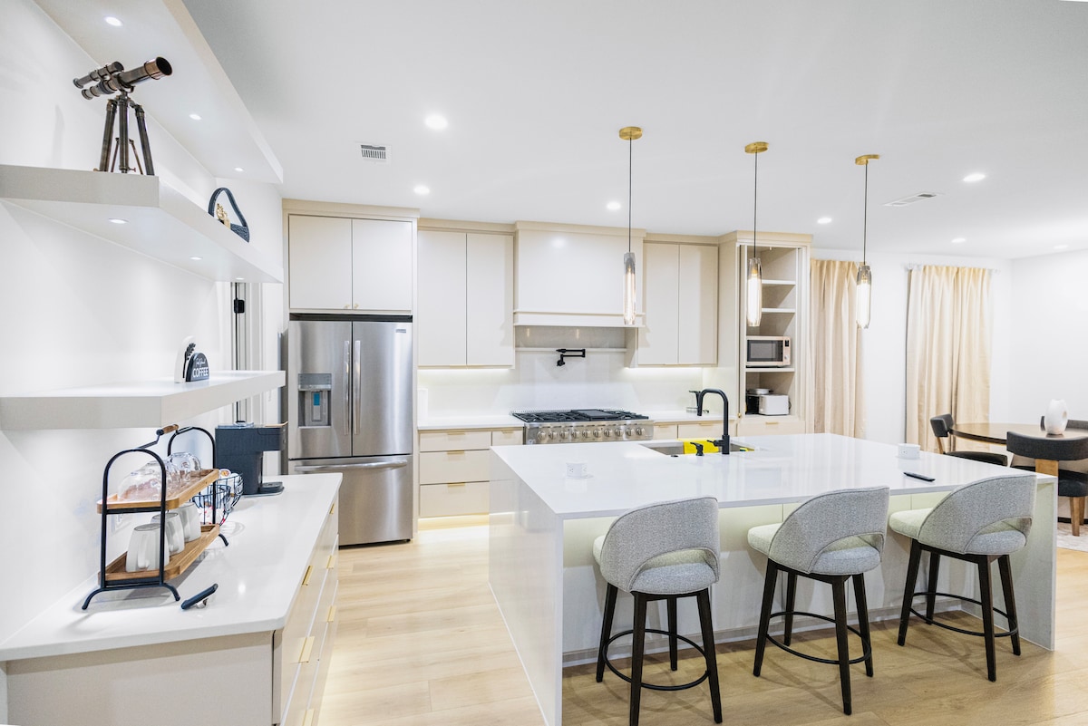 Disfruta de un refugio de lujo diseñado para ofrecerte comodidad y estilo. La suite del rey cuenta con un mural de pared, balcón privado y vestidor, mientras que el baño inspirado en el spa ofrece un bidé Toto y una ducha de vidrio con azulejos con múltiples cabezales. Entretenimiento en el teatro personalizado con pantalla de 100", proyector 4K y sonido envolvente, o trabajo en la oficina ejecutiva con monitor curvo de 32". La cocina del chef está totalmente equipada para comidas gourmet, con entrada privada y aparcamiento en garaje incluido. Puede haber algunos pelos de perro presentes