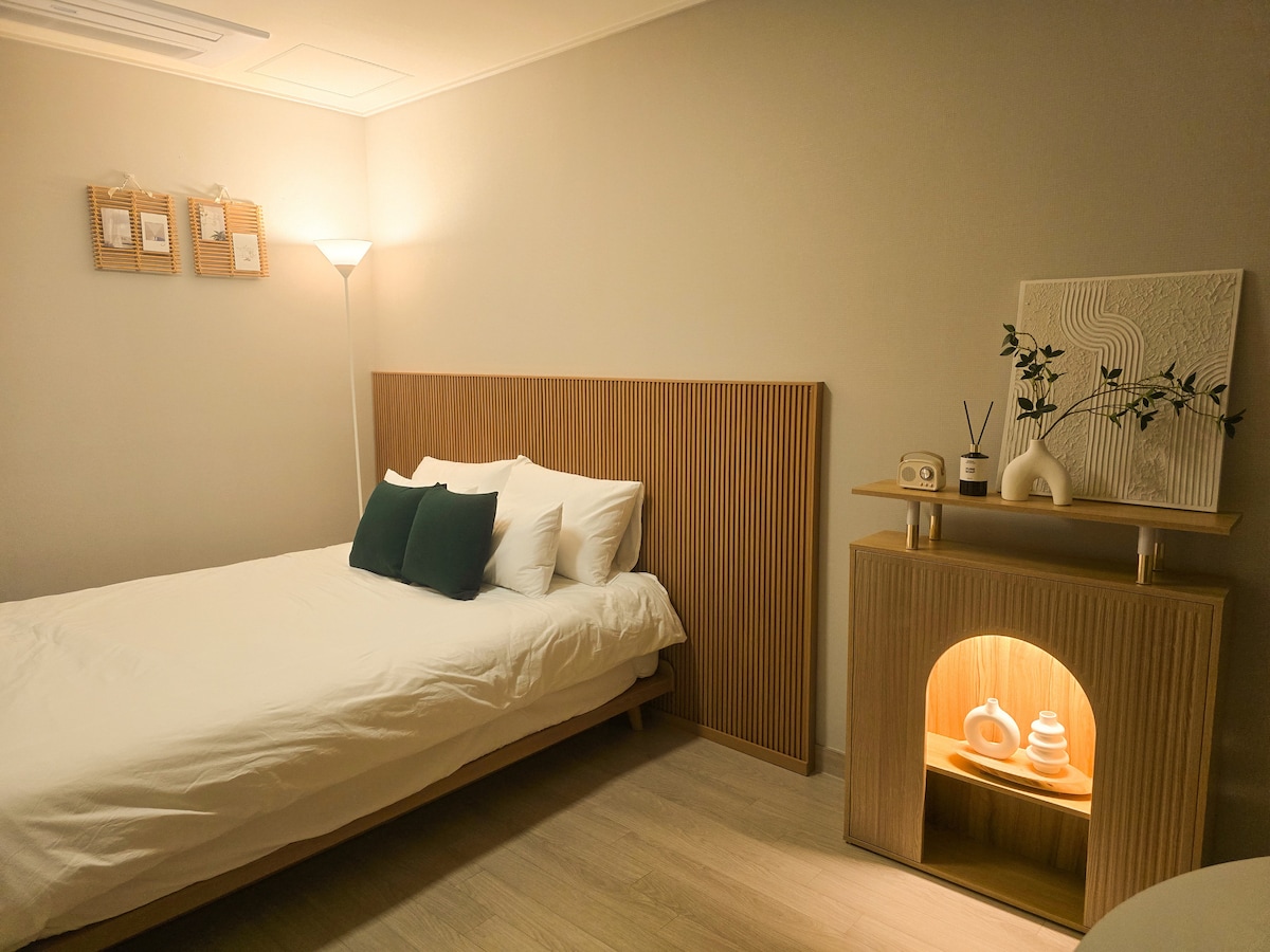 최고급 킹사이즈 침대에서 편안하게 잘 수 있어요☺️ 송도 달빛축제공원과 G타워, 연세대 국제캠퍼스, 인천대, 송현아 등이 인근에 위치해있어 일정 후 머물기 좋아요🫠 쇼파에 기대어 넓은 스마트TV로 넷플릭스, 유튜브를 보며 하루를 마무리해보세요🎉 필요나 선호도에 따라 좌식식탁, 책상을 자유롭게 배치하여 공간을 마음껏 누리세요😉 숙박 일수(연박)가 늘어날수록 숙박단가가 저렴해져요🫢 호스트는 언제나 게스트의 말에 귀를 기울입니다. 필요한 사항이나 개선해야 할 사항이 있다면 언제든 말해주세요😌