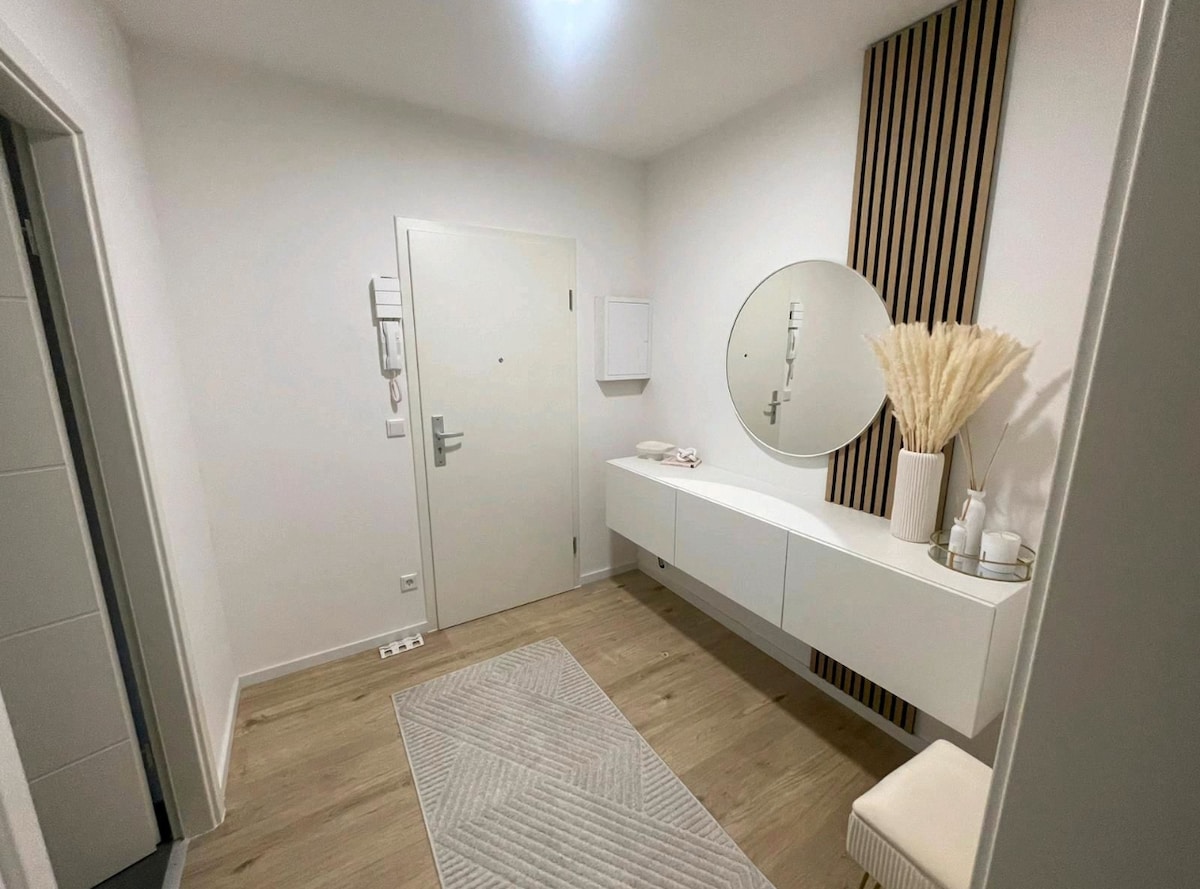 El encantador apartamento está amueblado con gran atención al detalle y ofrece a nuestros huéspedes un máximo de paz y comodidad. Un suelo de parqué de alta calidad en todas las salas de estar crea un ambiente acogedor y agradable. La sala de estar, el comedor, el dormitorio y la cocina se mantienen abiertos y ofrecen un ambiente espacioso. El baño está equipado con una bañera de hidromasaje. Y para nuestros huéspedes a los que les gusta cocinar, nuestra cocina totalmente equipada no deja nada que desear.