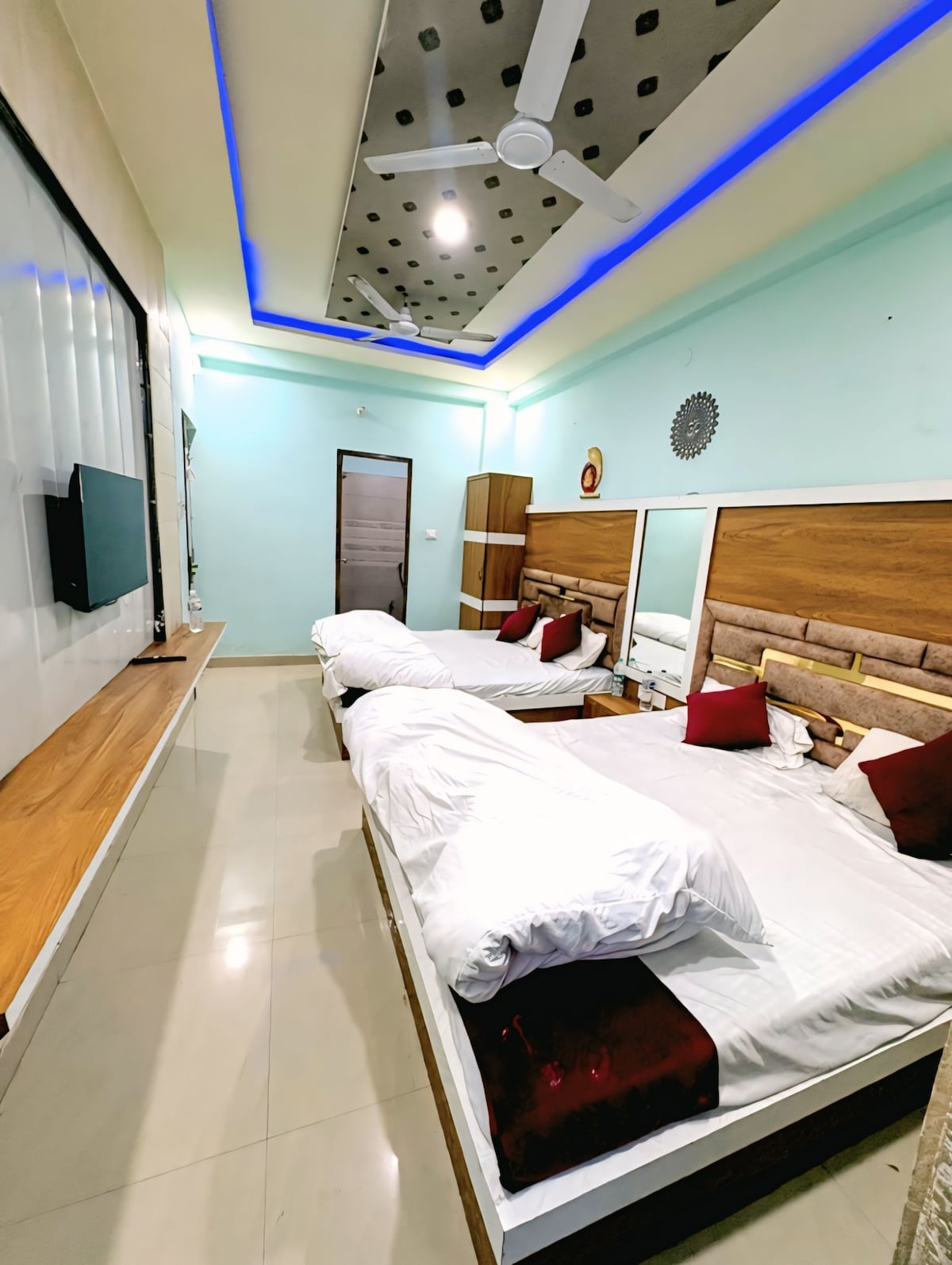 “Experience a peaceful and comfortable stay at our well-maintained guest house located near major temples and ghats. Enjoy clean, spacious rooms, fast Wi-Fi, 24/7 assistance, CCTV security, and a welcoming atmosphere. Perfect for families, couples, and solo travellers looking for convenience and safety. Your comfort is our priority—relax and feel at home.”