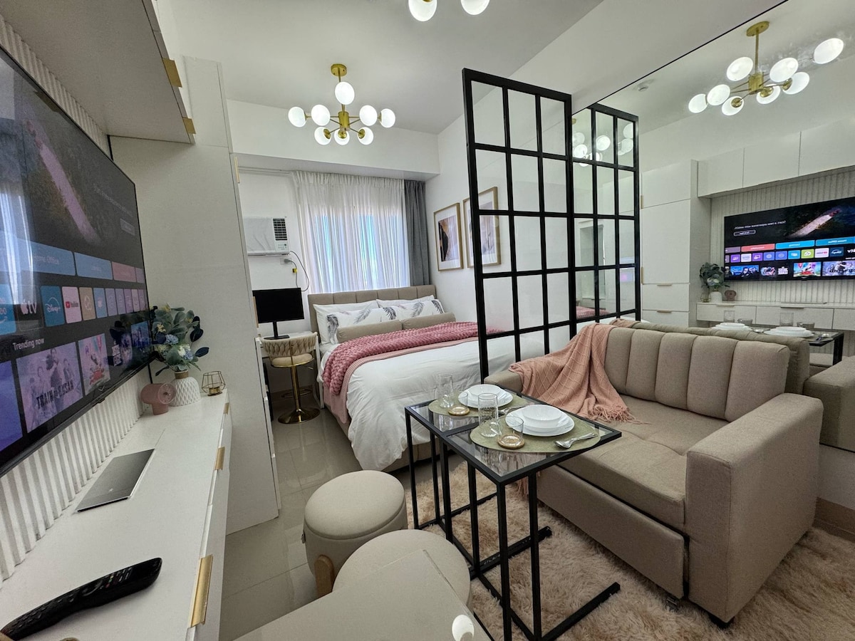 ¿Buscas un lugar acogedor y minimalista para trabajar o jugar? Nuestra unidad de 17 metros cuadrados es perfecta para estancias de negocios con su fuerte wifi y perfecta para una escapada relajante a la ciudad. Atención: estar a lo largo de la carretera principal significa algo de ruido de tráfico, ¡pero la comodidad, la comodidad y la energía de la ciudad hacen que todo valga la pena! * Diseño minimalista acogedor * Uso ilimitado de wifi: 250 Mbps PLDT * Netflix y YouTube gratuitos * Uso gratuito de juegos de mesa y de cartas * Ropa de cama y toallas de algodón * Cocina pequeña * Televisor de 32 pulgadas * 1 HP Smart AC split type