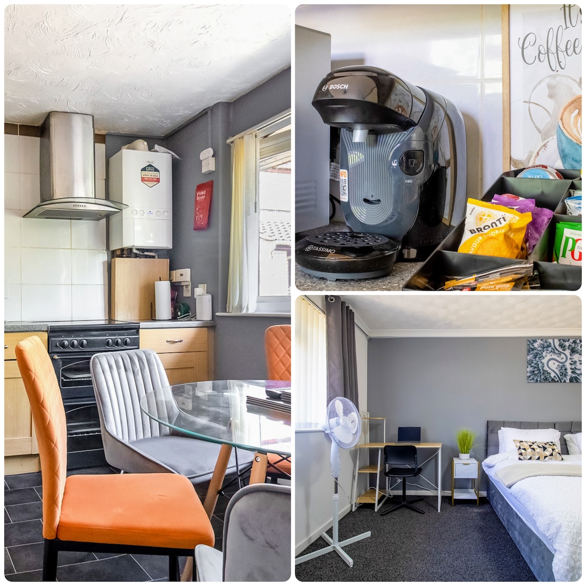 We welcome you to our private city centre house, perfect for contractors and relocators, conveniently located near train and bus travel. Designed for a comfortable stay for two, it features a fully equipped kitchen, cozy living room and comfortable bedroom. Enjoy Coventry's best restaurants and food spots just around the corner. This property comes with free secure on street parking with EV charging and is located in a private, gated location.Coventry Building Society Arena Hospital 5-10mins