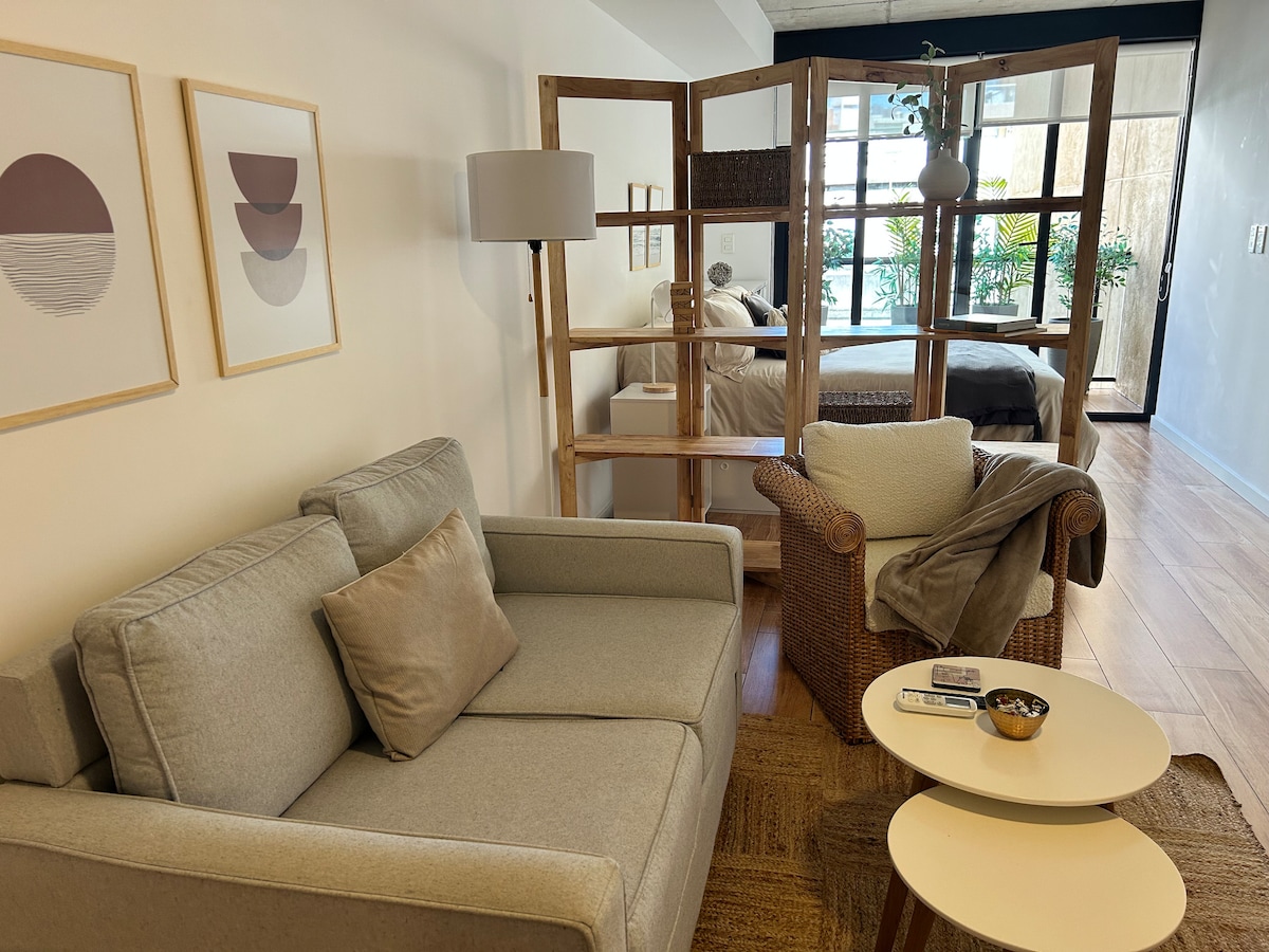 Amplio Studio tipo Loft en el corazón de Pocitos, diseñado para ofrecerte una estadía cómoda y práctica. El espacio cuenta con una cocina-comedor totalmente equipada, living con cómodo sofá, Smart TV y aire acondicionado. El área de dormitorio ofrece un sommier matrimonial de alta calidad y espacio de guardado. Todo está pensado para que disfrutes de tu estadía con total confort.
