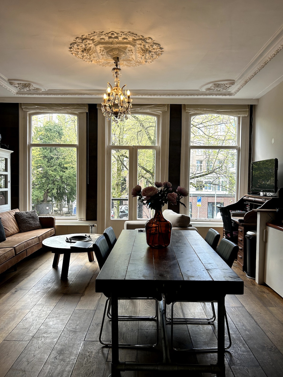¡Lo encontraste! Este espacio único combina sin esfuerzo lo mejor de la elegancia y el comodidad. Los techos altos, la luz, las hermosas vigas expuestas y el arte precioso, todo crea una auténtica experiencia en Ámsterdam en una ubicación privilegiada. Construida en 1890 justo en el prestigioso canal Singel, esta casa aristocrática ha sido el hogar de varios intelectuales holandeses famosos. Luminoso y espacioso, iluminación de diseño, muebles elegantes, cocina moderna, wifi rápido: todo está listo para tu estancia perfecta en la ciudad.