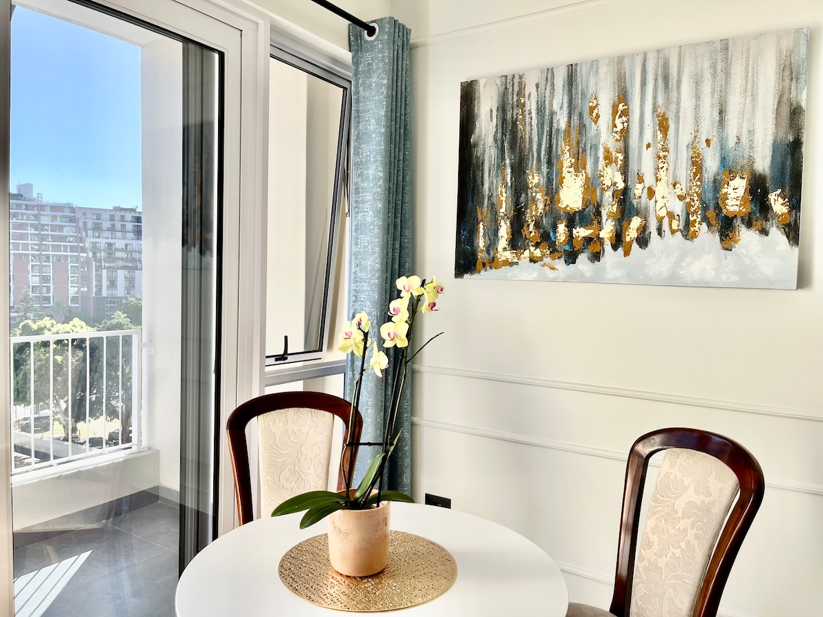 This is an ultra modern, incredibly spacious (200 sqm), split-level flat (2 floors) with double-glazed windows for quiet sleeping, and aircon throughout. Luxurious and modern finishes define this space. Fully equipped kitchen. Four flat-screen TVs and a large book library. Fast speed 100Mbps internet. Two large secure parking bays. Our building is not subject to rolling blackouts - the ELECTRICITY IS ALWAYS ON! The building is ultra secure with 24x7 security at front entrance and garage.