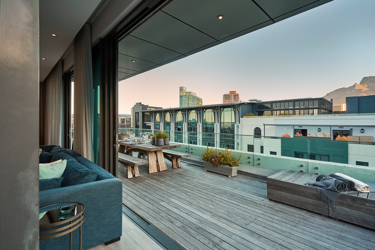 The townhouse, situated in De Waterkant's most beautiful street, offers everything you need for the perfect stay in Cape Town. Sheltered from prying eyes, you can take a refreshing dip in the private rooftop pool. The view from the roof terrace is always a source of wonder and inspiration. While you can see both the world-famous Table Mountain and the impressive skyline of Cape Town's city centre, your gaze also sweeps over the colourful houses of De Waterkant, all the way to the Atlantic Ocean.