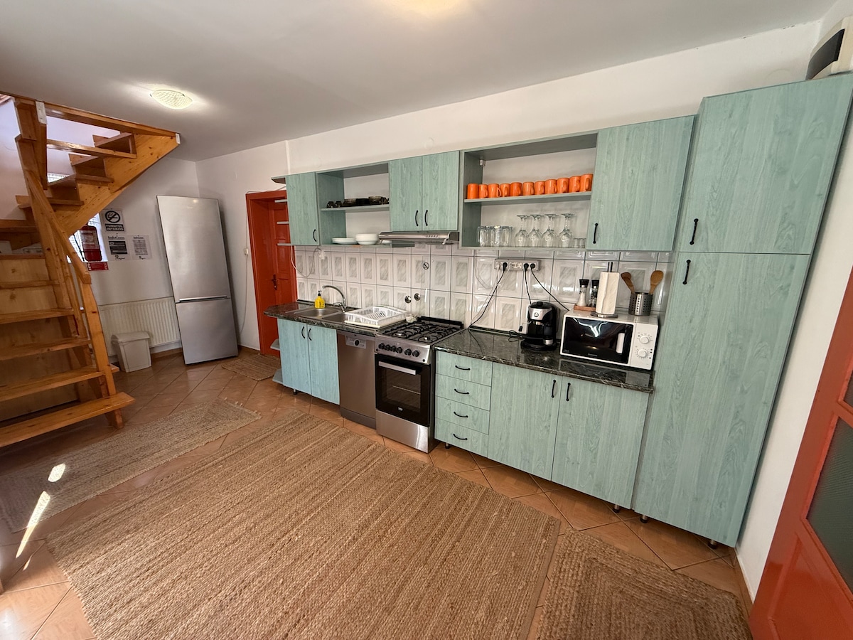 Si quieres relajarte, nos encontrarás en el corazón de Transilvania con familiares o amigos. con TV en la habitación, WIFI. La calefacción se realiza mediante calefacción central, el recolector solar proporciona agua caliente. Hay muchas flores en nuestro patio donde se encuentra el jardín de verano. El patio ofrece tanto la oportunidad de estacionarse de forma segura y relajarse, como también para cocinar en el jardín, hacer barbacoa, entretenimiento en la fogata.