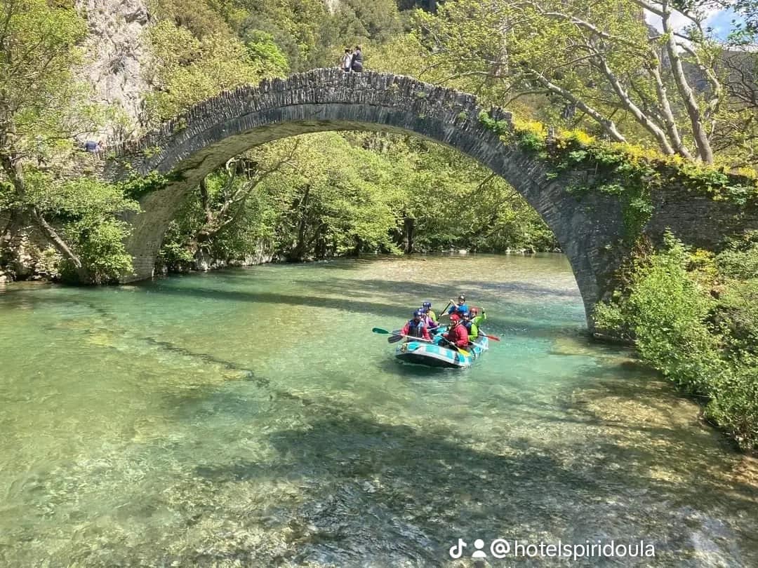 Hotel Spiridoula. It is located in Kleidonia, next to the gorge and the 45 picturesque villages of Zagori or Zagorohoria. The first village is Aristi in 10 minutes. 1km From Spiridoula Hotel is Voidomatis, with its crystal clear water and Vikos Gorge, the deepest and longest canyon of Europe. In a few minutes you are in Aristi and follow Papigo, Monodendri, Vitsa, Tsepelovo and Konitsa where you can find the best market in the area. Breakfast price: 7 € per person.