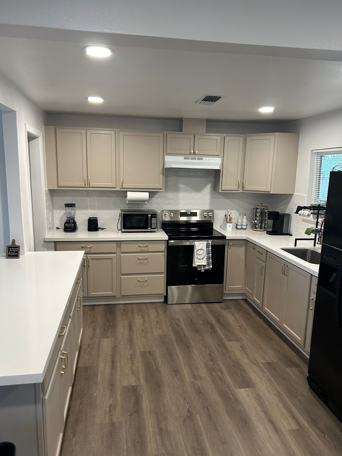 Casa privada capacidad para 9 personas en este recién remodelado 4 dormitorios 2 baños Inicio Lejos de con pisos de madera Granito Contadores Cuarto de lavandería incluido Inicio Super Anfitrión 5 estrellas en Deer Park TX con 3 camas king size, una reina y un sofá Sala de juegos con Pacman Arcade y patio trasero cubierto e internet de alta velocidad wifi tv inteligente en todas las habitaciones Patio trasero privado, Culdesac Street Hermoso roble de 100 años de edad para sentarse por la noche