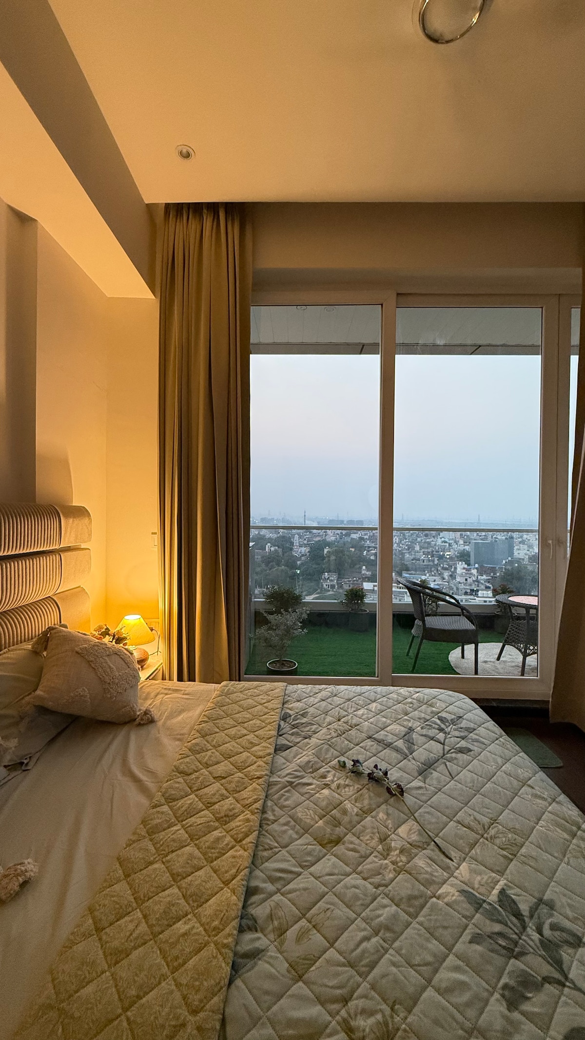 Stylish private studio in Gurgaon's Sector 49, perfect for 2. Located in Element One Mall. Comfort includes : ✦ King bed ✦ Dedicated workspace with 150 Mbps Wi-Fi ✦ Full kitchenette ✦ Private Balcony ✦ Prime Location: 20 mins from the IGI Airport ✦ Ideal for work, leisure, romantic escapes, solo, or corporate trips. ✦ Cafes, Shops, and Restaurants are just an elevator ride away. ✦ Seamless self-check-in and on-site parking included. ✦ Rooftop Swimming Pool (IN4 499/+ Taxes per person)