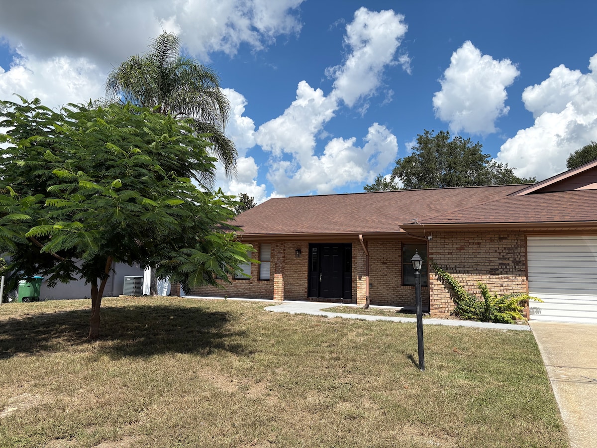 Casa familiar renovada en un barrio residencial tranquilo. A 45 minutos de Daytona Beach y New Smyrna Beaches, y a una hora de Disney, Universal Studios, Animal Kingdom, Epcot y todas las atracciones de Orlando. Deltona es famosa por sus numerosos lagos y manantiales. Ideal para familias y con una ubicación céntrica entre Daytona Beach y los parques de Orlando. El circuito de Daytona está a solo 36 minutos en coche. Si viajas con un bebé, para tu comodidad, te proporcionamos un corralito, una silla mecedora y una bañera.