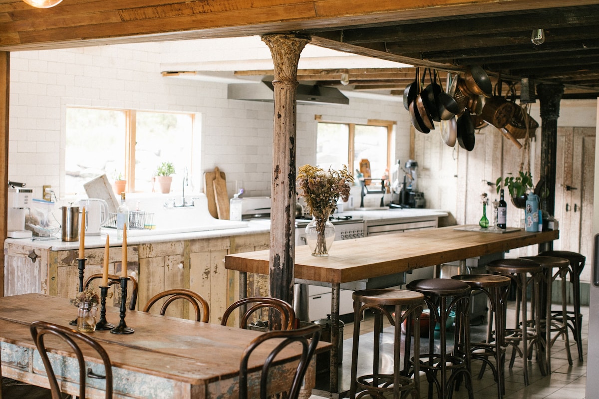 Adéntrate en la historia de Catskills en The Red Hill Farmhouse (1849). Restaurada con cariño por el diseñador John McCormick, esta granja original combina vigas recuperadas, detalles antiguos y encanto rústico con comodidades modernas. Cada rincón cuenta una historia. Relájate en las camas Casper, cocina en una cocina de chef totalmente equipada, sumérgete en la bañera de hidromasaje o reúnete alrededor de la fogata bajo las estrellas para una estancia verdaderamente mágica.