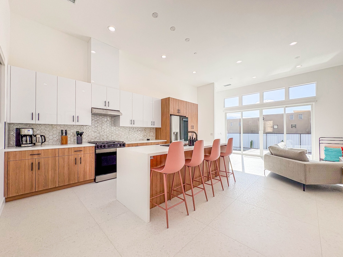 Escápate a este impresionante refugio en el desierto, diseñado para ofrecer lo último en comodidad y estilo. Ubicado en medio de impresionantes paisajes desérticos, este moderno oasis es perfecto para aquellos que buscan unas vacaciones de lujo. En tu oasis privado en el patio trasero, encontrarás una piscina resplandeciente, una relajante bañera de hidromasaje y áreas de patio a la sombra perfectas para descansar y disfrutar del sol. Para los que disfrutan de un poco de competencia amistosa, el patio trasero también cuenta con un putting green, cornhole y una cancha de pickleball.