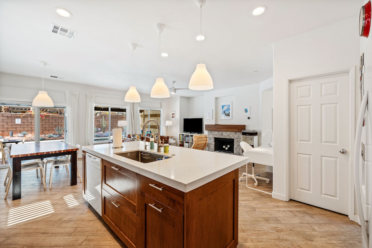 La Casa Descanso es tu oasis en el desierto para relajarte. Ubicada en la serena ciudad de Desert Hot Springs, esta casa de nueva construcción fue diseñada pensando en tu escapada. Empieza la mañana en el interior, en la cafetería, y luego sal a disfrutar del sol. Estamos ubicados cerca de Palm Springs, el parque nacional Joshua Tree y la ciudad de Indio. Ya sea que estés buscando unas vacaciones familiares o un alojamiento durante Coachella, te invitamos a descansar aquí.
