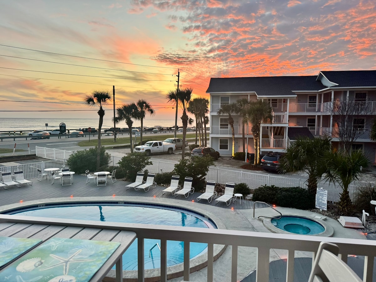 La unidad de la planta superior frente a la playa, en una playa privada, en un edificio de dos pisos ofrece vistas despejadas al atardecer/al mar. Ubicado en suave arena blanca con aparcamiento gratuito en el lugar. Las ventajas de elegir esta unidad incluyen complejo cerrado con piscinas, servicio de playa incluido (marzo-octubre), canchas de tenis, pelota de pepinillo y campo de golf par 3 (incluido). La unidad tiene cocina totalmente funcional y wifi incluido. ¡Vistas a la playa/puesta de sol del dormitorio principal! Capacidad para 4 adultos con uso de sofá cama en la sala de estar y literas adicionales del tamaño de una cuna.