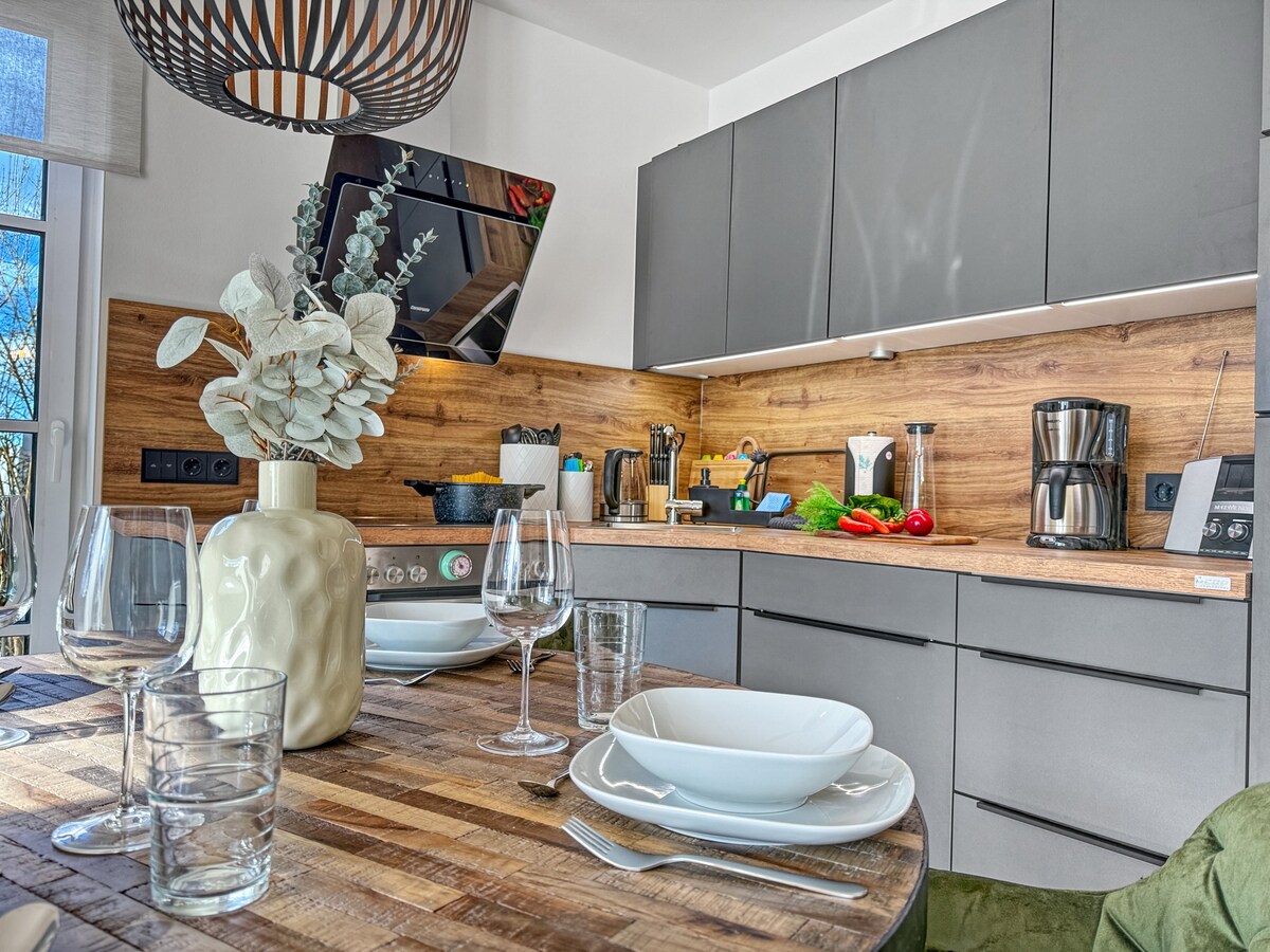 ... mira desde tu cama al agua, disfruta de la paz y la tranquilidad y escucha el susurro del bosque de hayas, experimenta recorridos en bicicleta directamente en el agua y disfruta de la naturaleza. Una hermosa, moderna y rústica casa de entramado de baja energía con tejado de paja, azulejos marroquíes, tablas de roble y paredes de yeso de arcilla te espera. Para las actividades hay un hermoso jardín grande con un columpio en el bosque, sauna de vapor gratuita, ducha y bañera al aire libre, una tabla de paddle surf, un barco de pedales y 4 bicicletas.