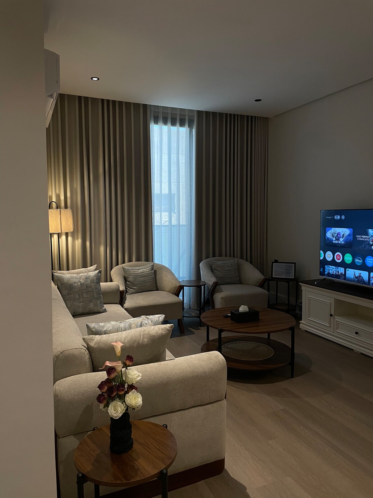 🌟 Disfruta de una estancia elegante y cómoda en un apartamento familiar especial 🏡 🛏️ Habitación King Master Modern (35 m²) 2 🛏️ camas separadas (25 m²) 👩‍🍳 Cocina con electrodomésticos y utensilios de cocina Amplio 🛋️ salón (60 m²) con Smart TV 📺 📶 Wifi | ❄️ Aire acondicionado | 🚗 Aparcamiento Ideal para familias, amigos o grupos pequeños, combina comodidad y lujo en un lugar donde comienzan los hermosos recuerdos.