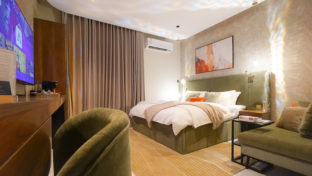 Experience luxury in our five-star hotel studio, designed for ultimate privacy and comfort. Enjoy a spacious master bed with daily-refreshed mattresses, and a bathroom stocked with premium amenities for a relaxing experience. The studio includes smart entry, high-quality bedding, and a coffee section with complimentary beverages for your first day. Added conveniences like hidden lighting Nearby amenities: - Grocery store - Laundromat - Pharmacy - Barber shop